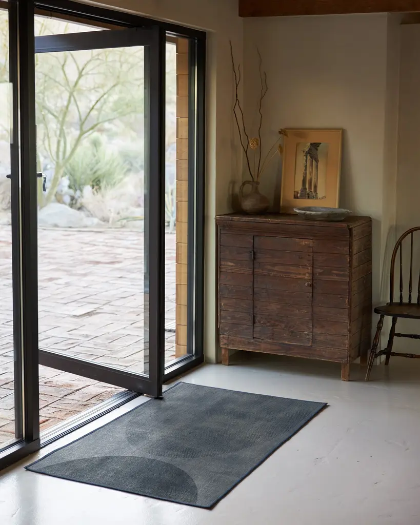 It's a total eclipse of the art. Our Eclipse Navy Rug offers a unique take on arches and the art of casting shadows, resulting in an overall modern design with distressed texture. A pair of circular shapes in varying deep navy hues come together to create subtle layers of dimension and variation. Water-resistant, stain-resistant, and machine-washable. Rug colors may vary slightly according to your device and the lighting in your space.