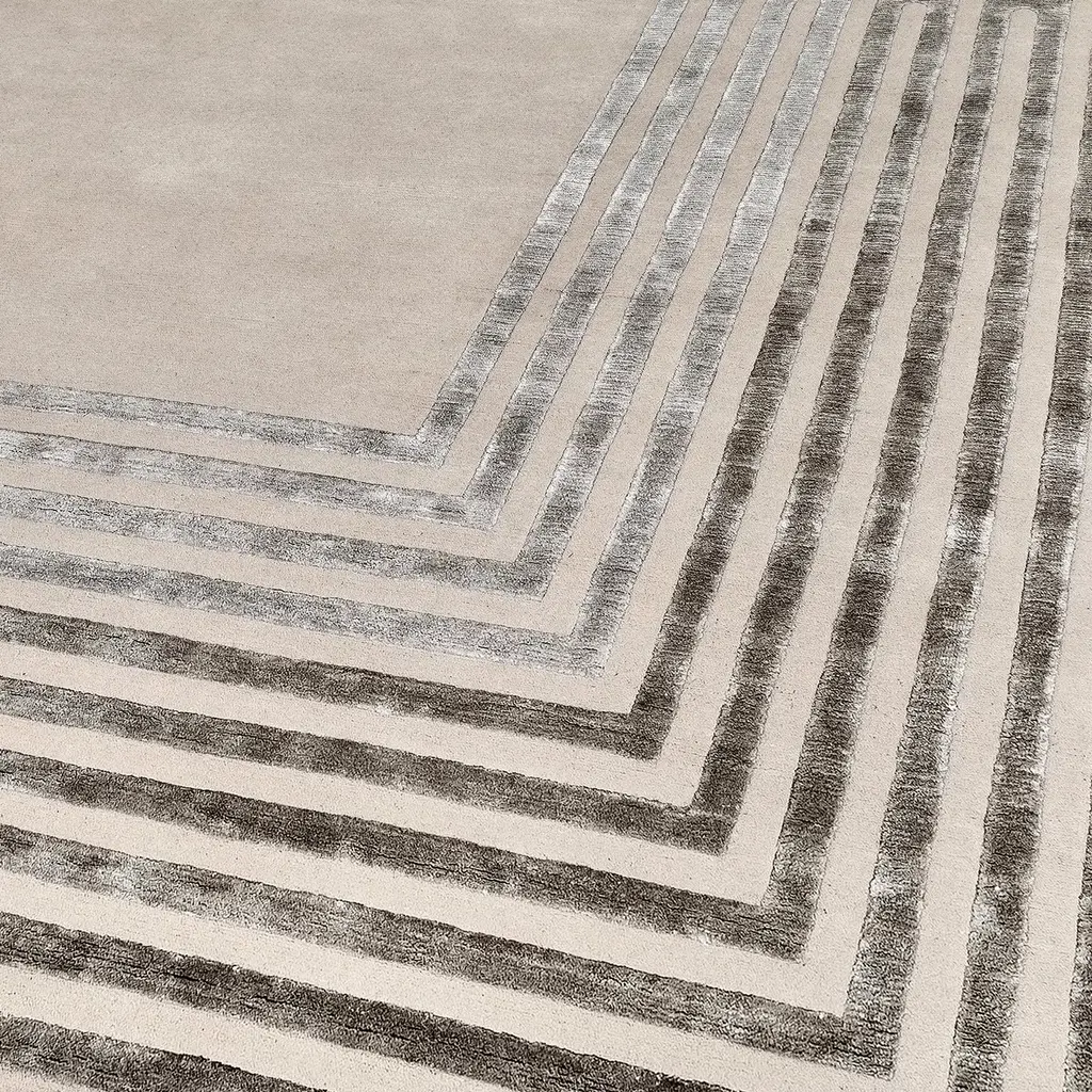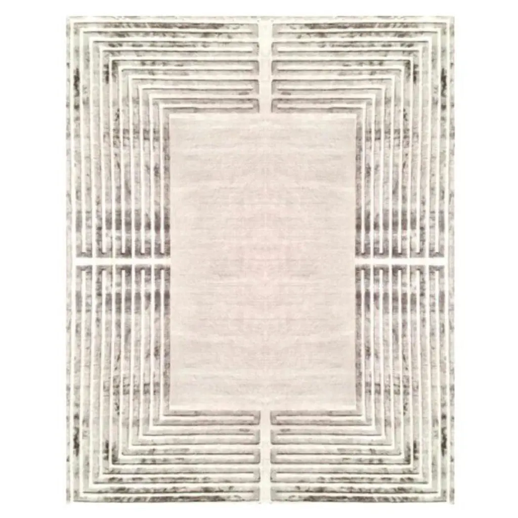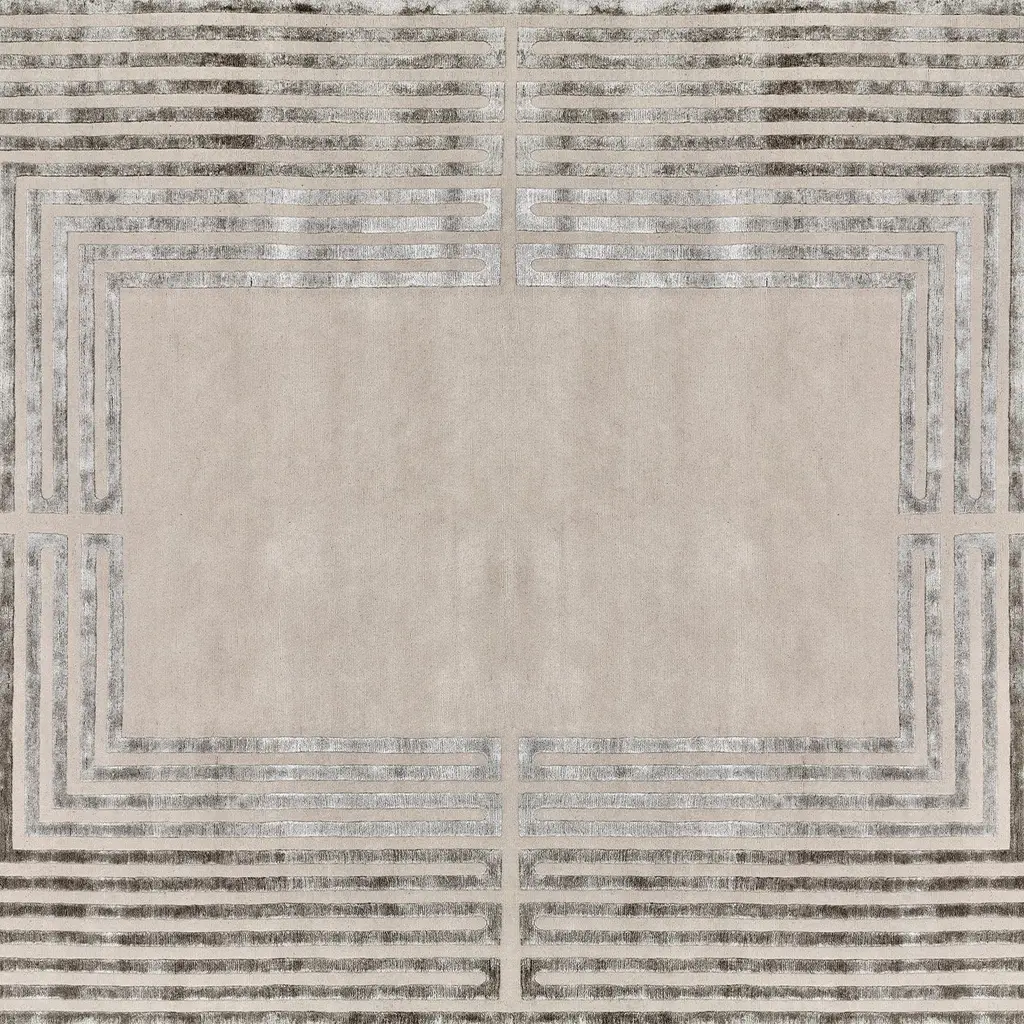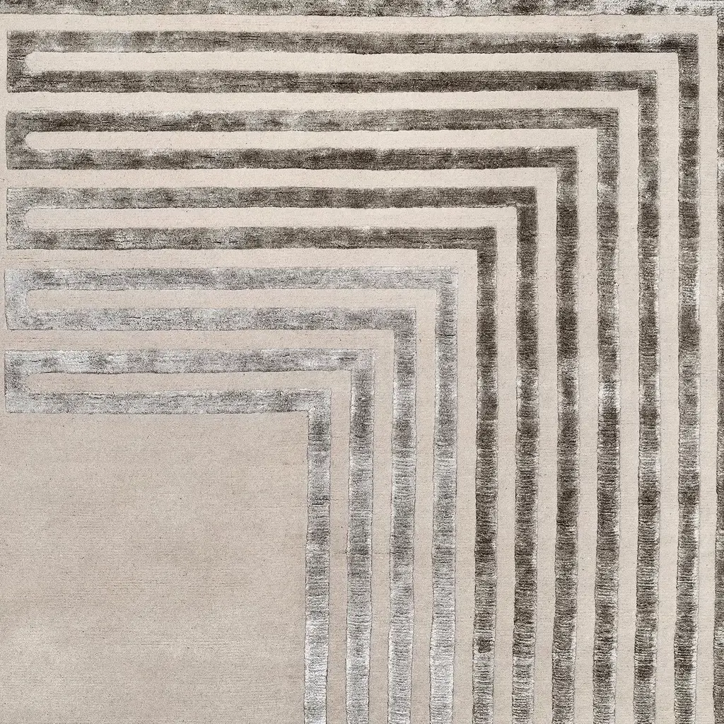 Part of the Ecstasy series in the Design Collection, the luminous and minimalist pattern of this splendid design will imbue a modern or classic room with sophistication. This unique rug is knotted by hand in Nepal of 50% silk and 50% Himalayan wool with 152,000 knot/sqm. The vegetable- and mineral-dyed threads have elegant neutral colors, which, along dimensions and thread composition, can be customized. Please consult the Concierge for details.