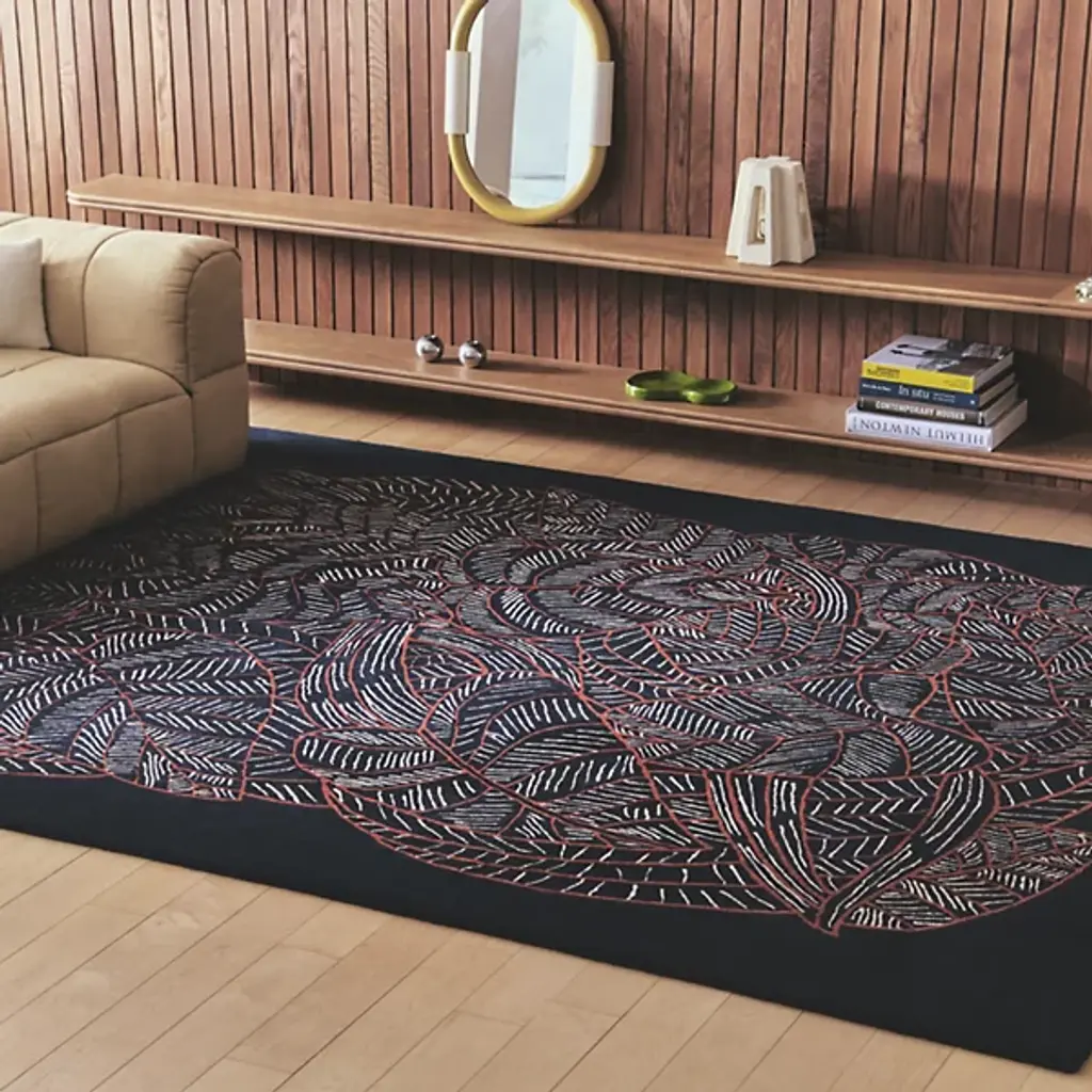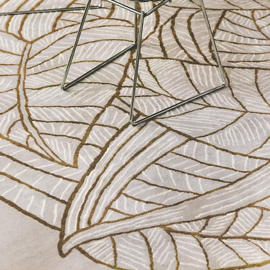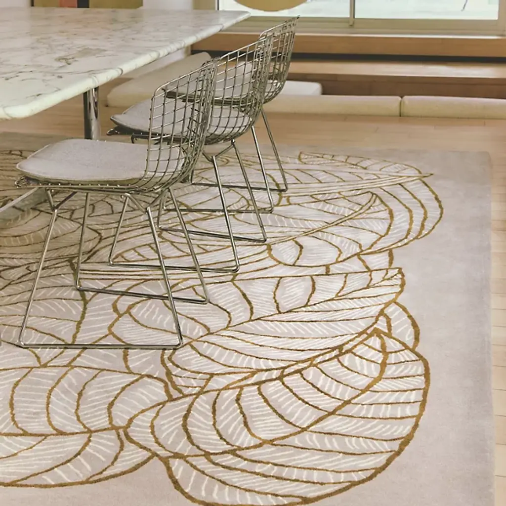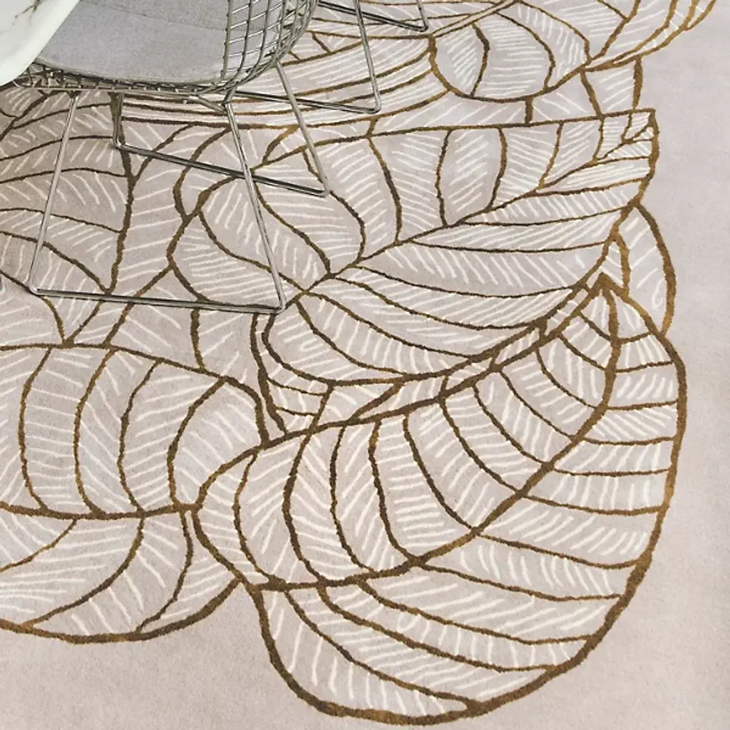 The Eden Area Rug from Toulemonde Bochart draws inspiration from tropical foliage through D. Chopard's botanical interpretation of leaf patterns and textures. This hand-tufted New Zealand wool piece features intricate vein details that run through each leaf form, creating a dense carpet of overlapping botanical elements across the surface. Each leaf seems to curl and twist independently, building up layers that suggest the lush abundance of rainforest floors. This brings natural richness indoors while providing the comfort and durability expected from premium wool construction.