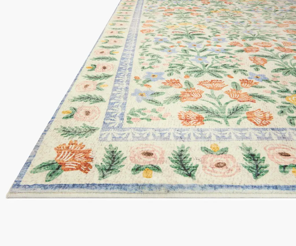 Traditional textile designs from India inspired the florals of the lush garden scene on our Mughal Garden Rug. The Eden collection was made with Loloi's CloudPile construction, a thick and soft fabrication that combines the best of affordable printed rugs with the plushness of a pile. Part of our Rifle Paper Co. × Loloi collaboration. The layout and scale of our rugs is adjusted to accommodate each available size, and may be different than what is pictured here. Images of each size are available by hovering over the desired size on our desktop site.