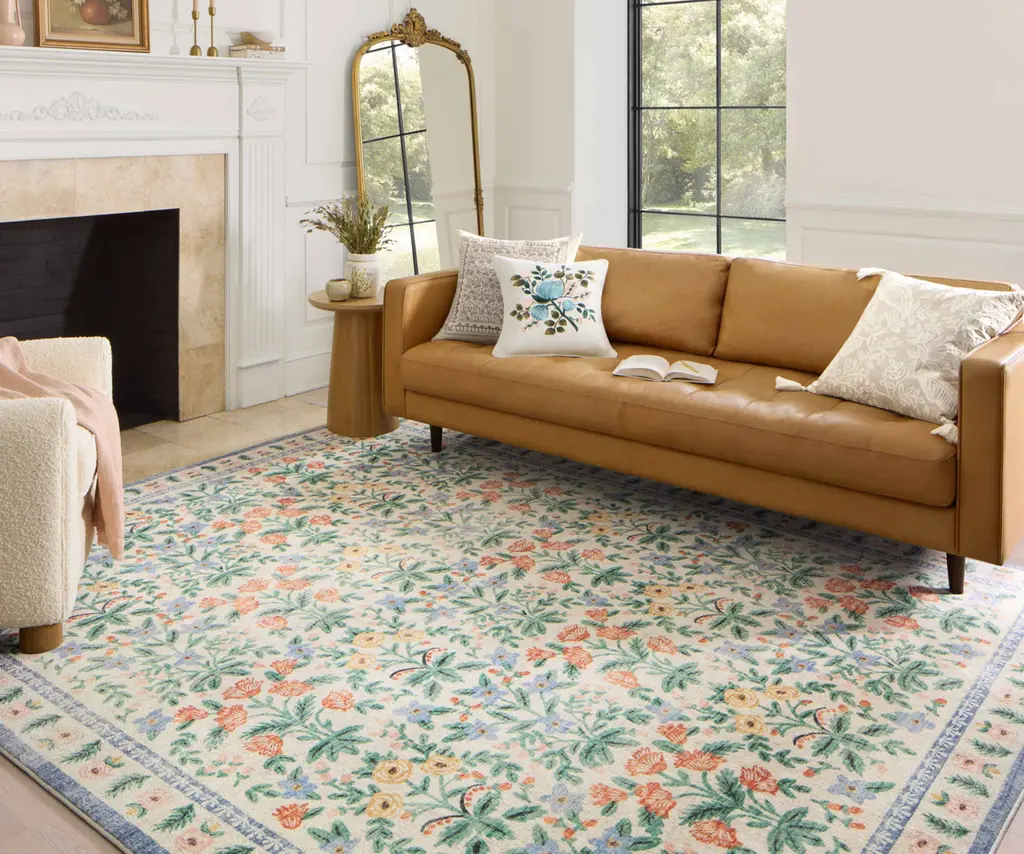Traditional textile designs from India inspired the florals of the lush garden scene on our Mughal Garden Rug. The Eden collection was made with Loloi's CloudPile construction, a thick and soft fabrication that combines the best of affordable printed rugs with the plushness of a pile. Part of our Rifle Paper Co. × Loloi collaboration. The layout and scale of our rugs is adjusted to accommodate each available size, and may be different than what is pictured here. Images of each size are available by hovering over the desired size on our desktop site.