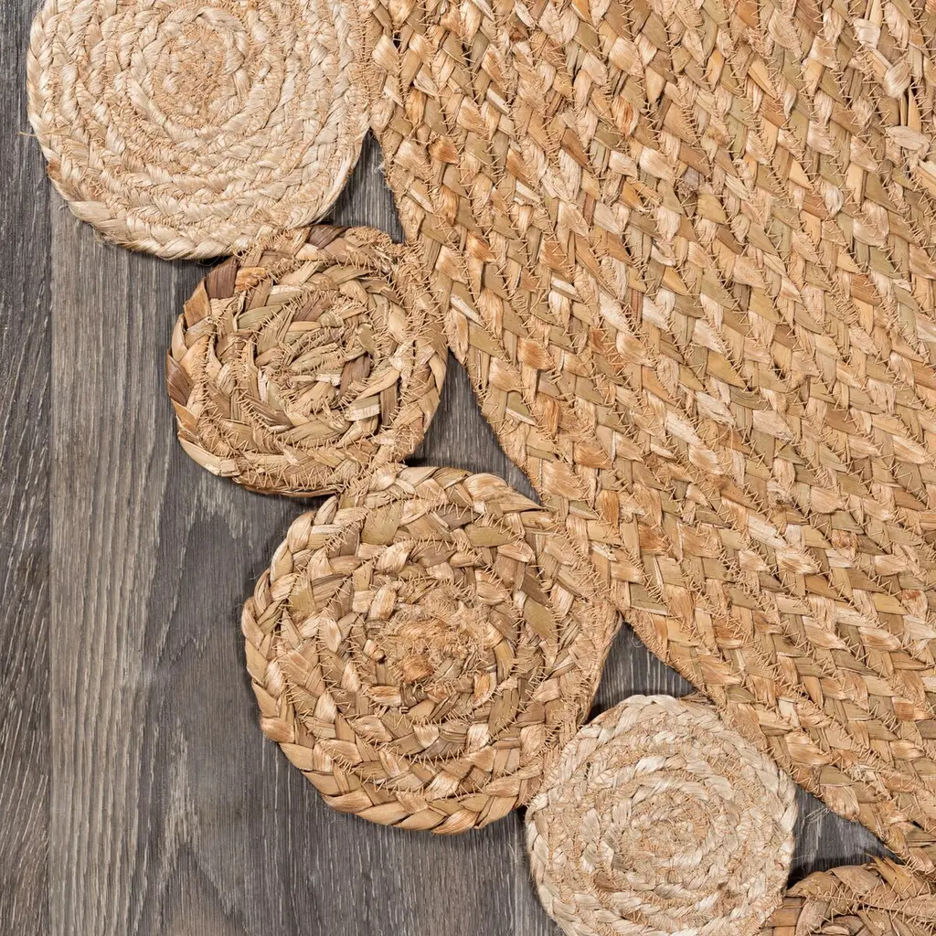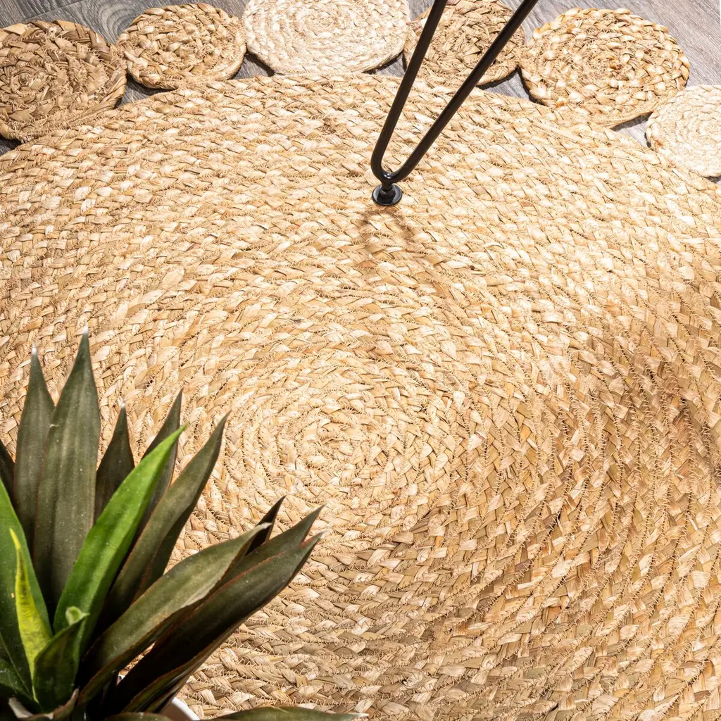 Get around to bringing some curves to a room courtesy of this circular jute rug. Its border of smaller circles adds a touch of whimsy to its organic ease. A rug pad is recommended to help prevent slipping and extend the life of the rug.