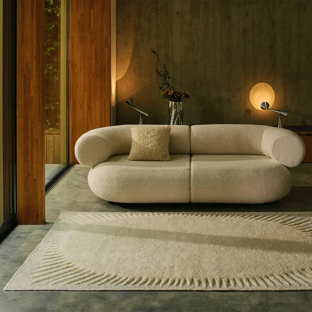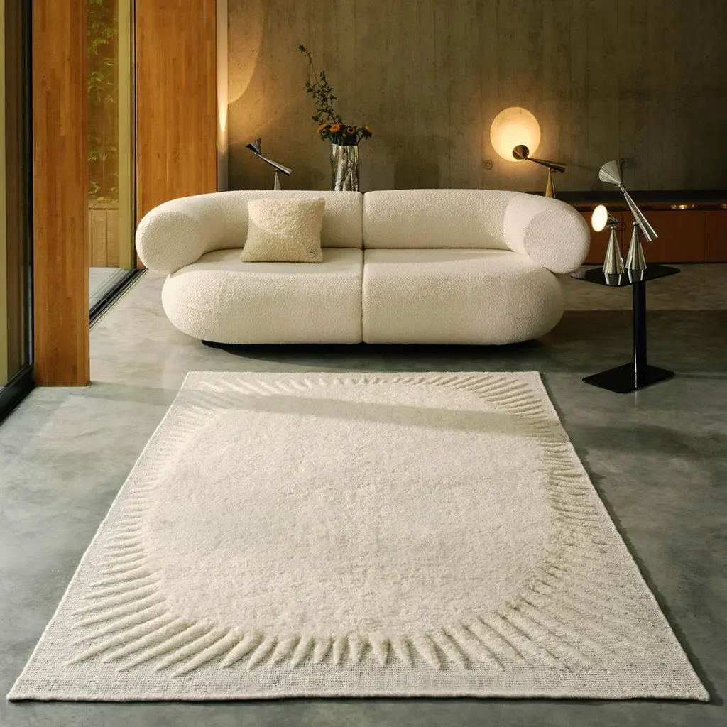 The Edgy Rug explores the use of a border to highlight the rug whereas the deep pile provides a tactile and visual contrast, making it an eye-catching addition to any room. Its handwoven base with a cut-back hand-tufted pile design adds a layer of craftsmanship that can elevate the decor in both modern and traditional settings. The two available sizes also give flexibility depending on the room's size and layout.