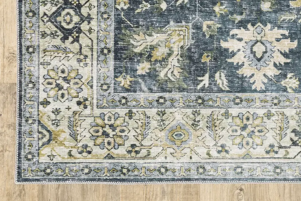 Made of 100% polyester, the Edir rug features an innovative, machine washable printed base with non-slip backing, perfect for high-traffic areas and family friendly living spaces. With its low-profile construction and intricate blanket stitch finish, the Edir rug boasts a distressed traditional design and is available in three color patterns. All sizes are machine washable and dryer friendly. Washers with agitators not recommended.