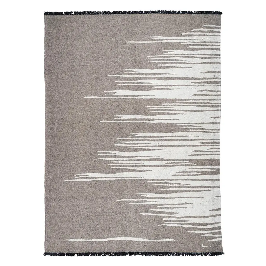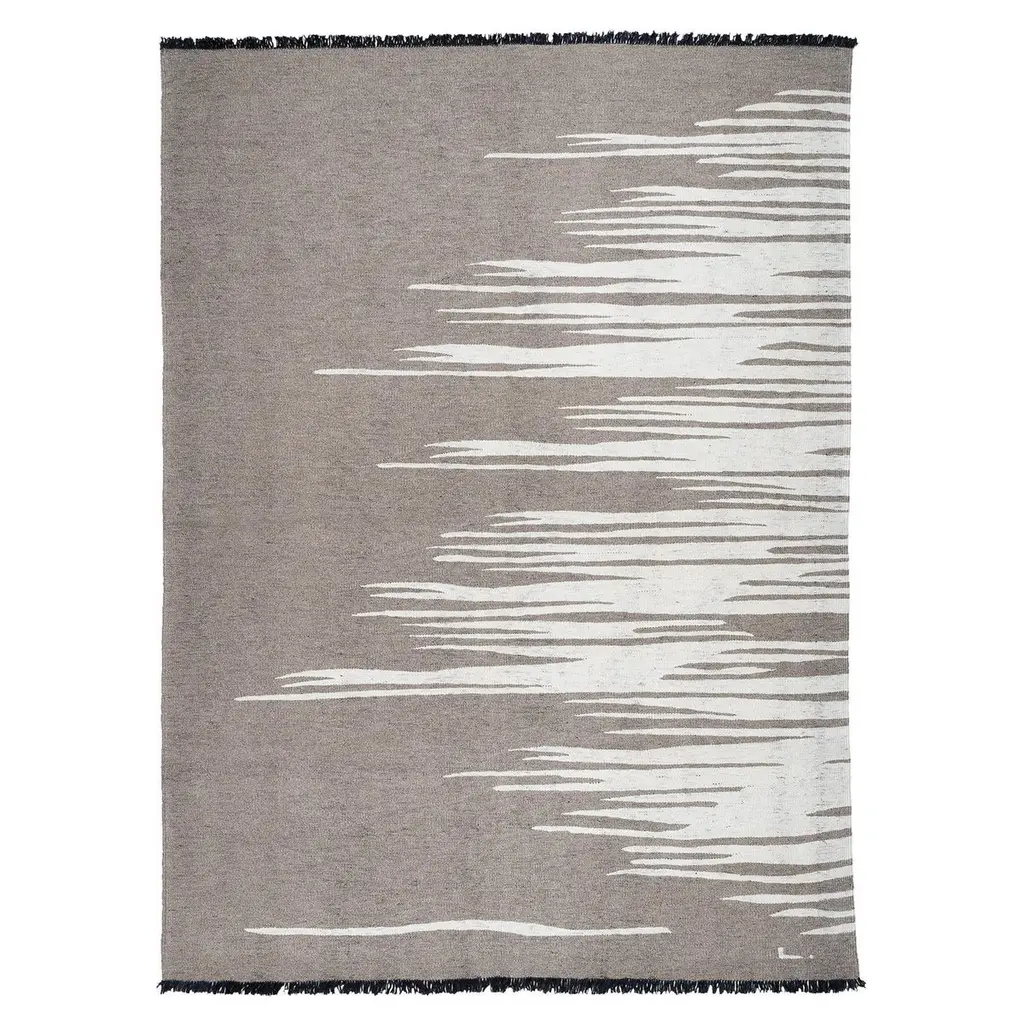 Ege No 3 Contemporary Kilim Rug Wool Handwoven Dune White And Earthy Gray