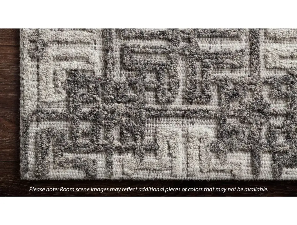 Give your floor a foundational work of art with the Loloi Ehren Charcoal/Fog Area Rug. This contemporary-style area rug features a textural square grid pattern in neutral charcoal and fog grey hues, and is hand tufted in India of 100% wool for long-lasting beauty.