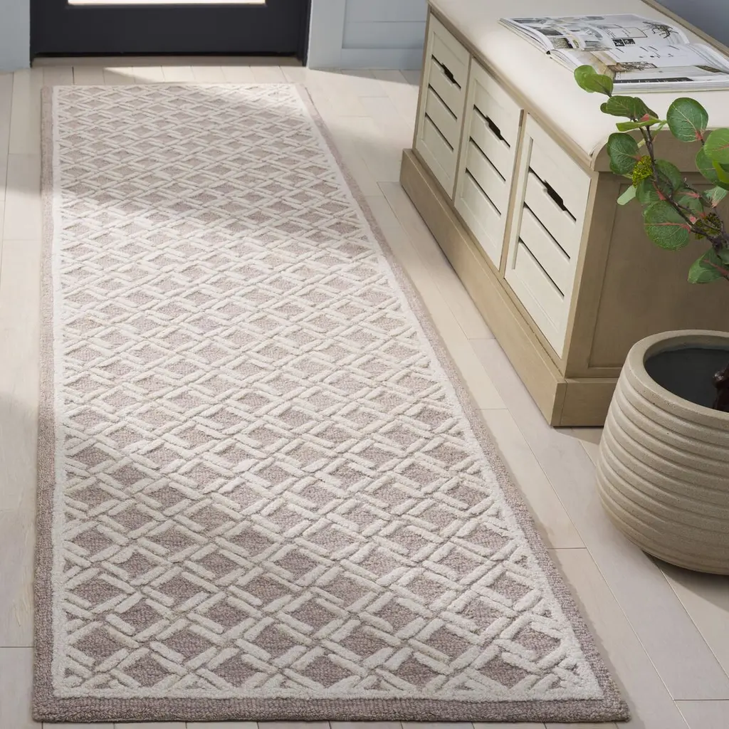 Elevate your living space with the timeless elegance of our hand-tufted area rug, expertly crafted in India. This exquisite piece boasts a harmonious blend of 80% wool and 20% cotton, making it a luxurious and durable addition to your home. Sized at a versatile 4 feet by 6 feet, this small rectangle rug features a plush height of 1/2 inch, providing a soft underfoot experience. The rug showcases an intricate lattice pattern, executed in soothing shades of green and ivory, offering a serene yet sophisticated look that complements a wide range of interior styles. Whether anchoring your living room, bedroom, or study, this rug's classic design and artisanal construction will provide a touch of artisanal charm and comfort to your floor for years to come.