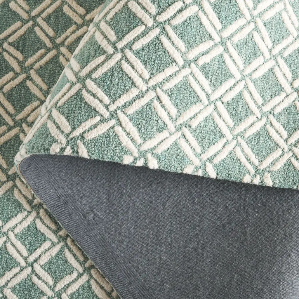 Elevate your living space with the timeless elegance of our hand-tufted area rug, expertly crafted in India. This exquisite piece boasts a harmonious blend of 80% wool and 20% cotton, making it a luxurious and durable addition to your home. Sized at a versatile 4 feet by 6 feet, this small rectangle rug features a plush height of 1/2 inch, providing a soft underfoot experience. The rug showcases an intricate lattice pattern, executed in soothing shades of green and ivory, offering a serene yet sophisticated look that complements a wide range of interior styles. Whether anchoring your living room, bedroom, or study, this rug's classic design and artisanal construction will provide a touch of artisanal charm and comfort to your floor for years to come.