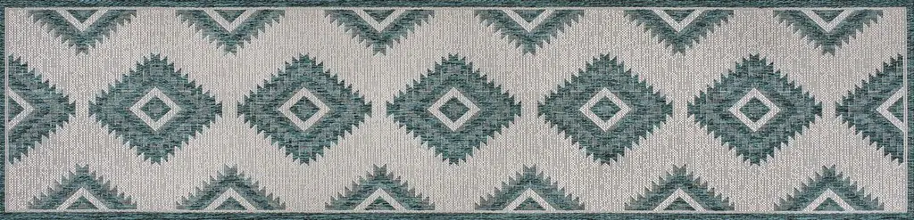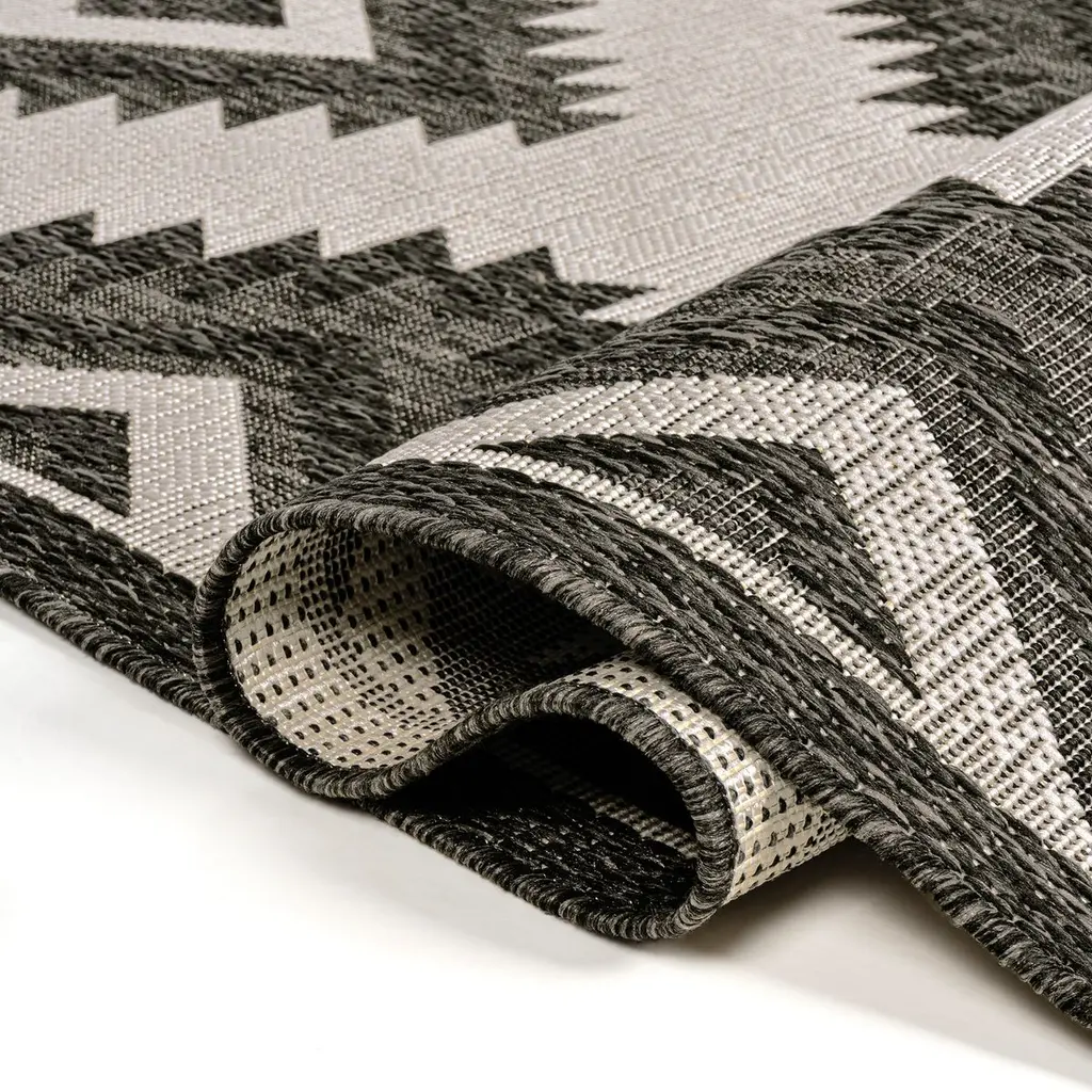 Inspired by vintage Moroccan and Southwestern motifs, this rug features a traditional geometric diamond pattern. It's made from durable synthetic fibers woven into a bold, updated design. Use this easy-care rug outdoors on a porch, or in the bedroom, living room or dining room.