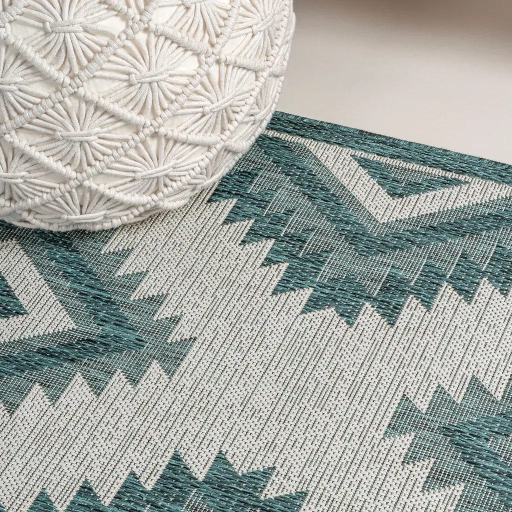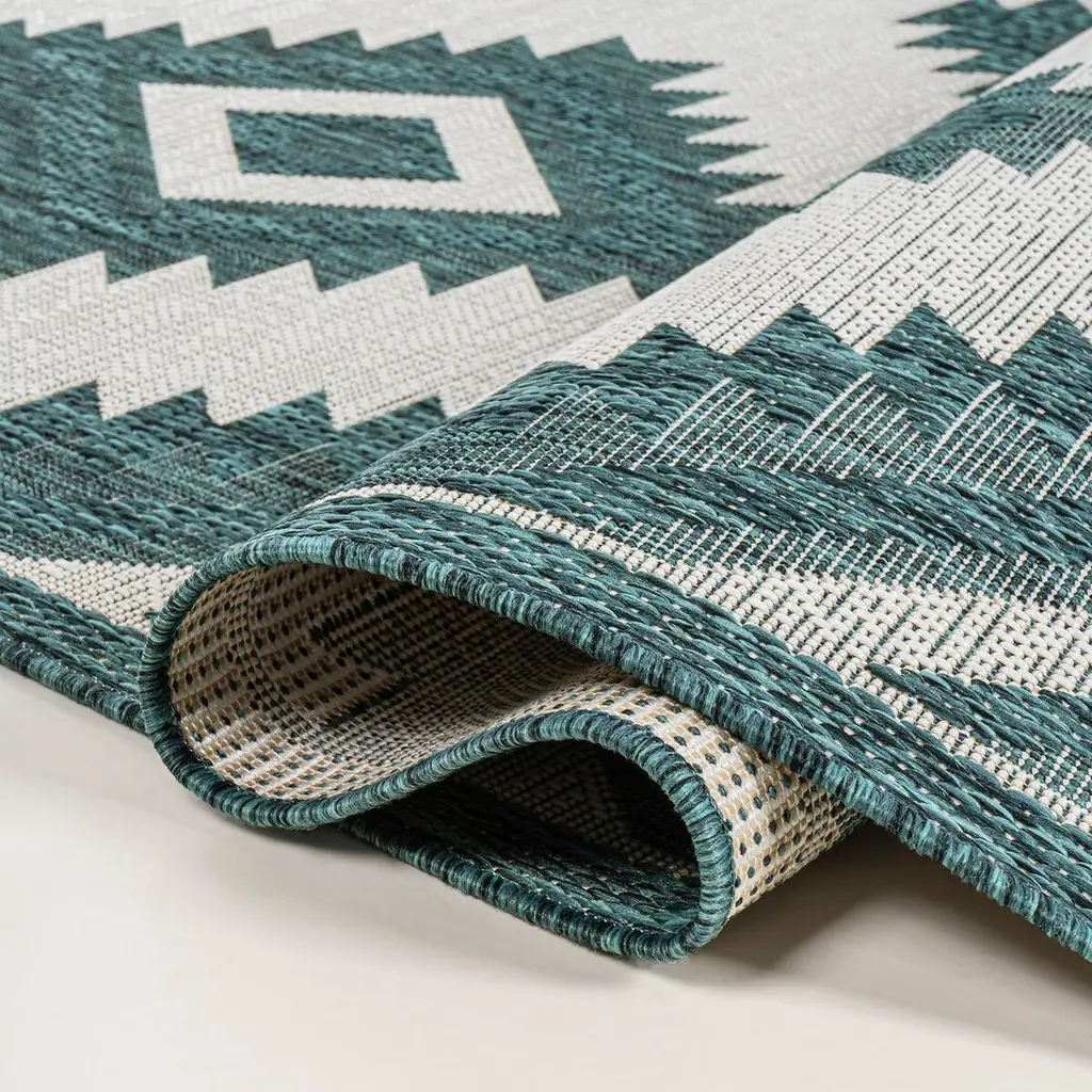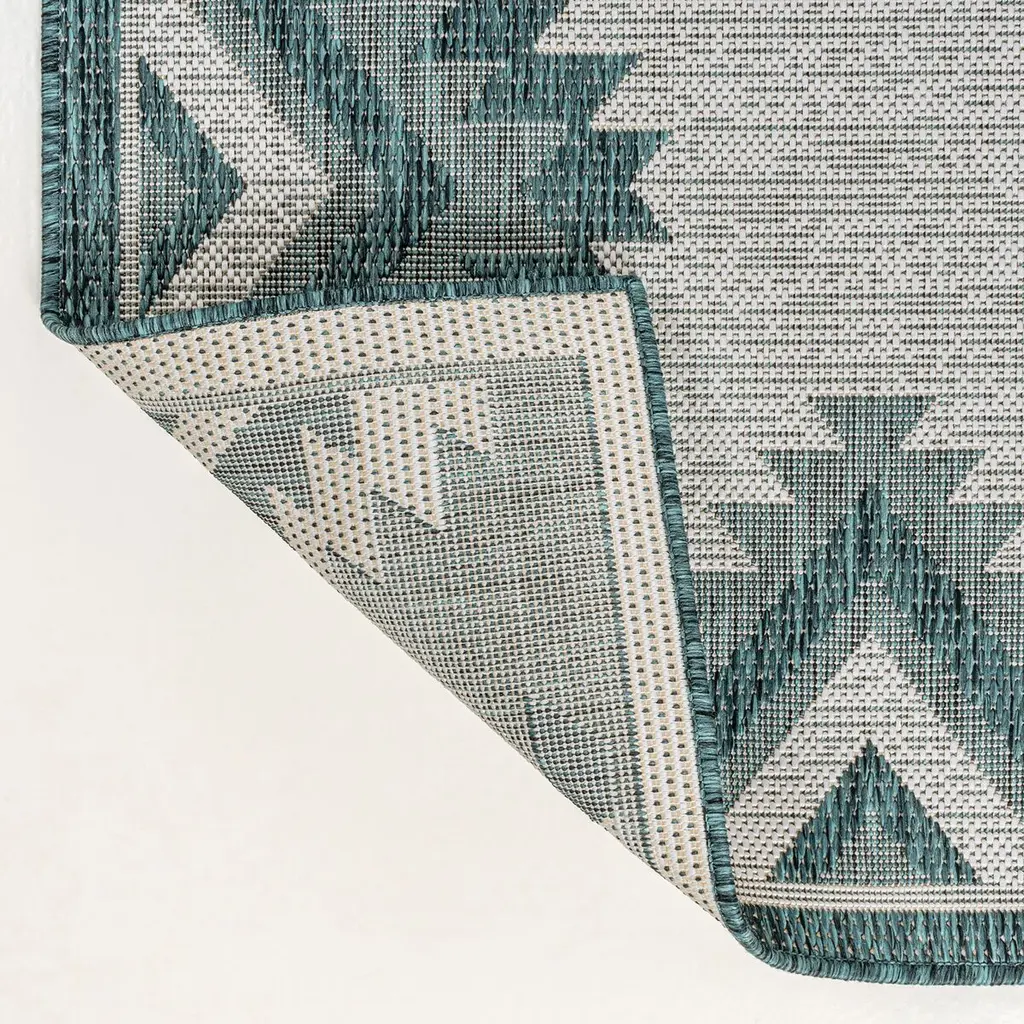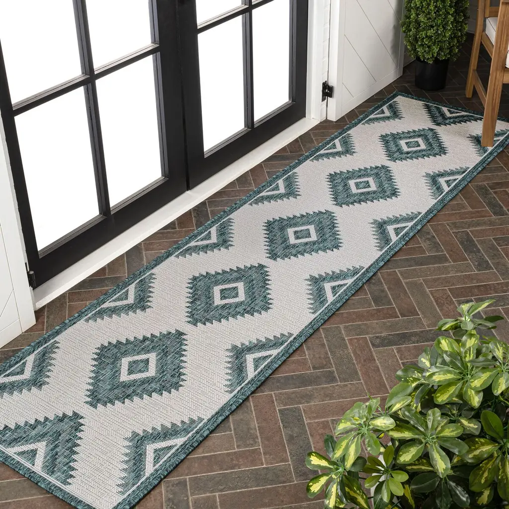 Inspired by vintage Moroccan and Southwestern motifs, this rug features a traditional geometric diamond pattern. It's made from durable synthetic fibers woven into a bold, updated design. Use this easy-care rug outdoors on a porch, or in the bedroom, living room or dining room.