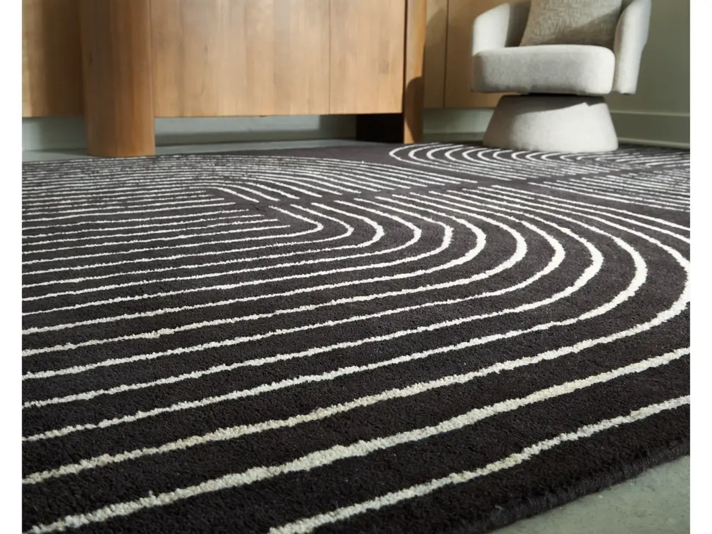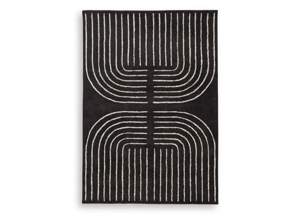 Rocking a stylish geometric design, the elegant Eldonmore area rug knows how to make a statement. Its black and ivory pattern offers a welcome complement underfoot that doesn’t overtake your room’s design. You’ll love how the rug adds a contemporary touch under a couch or bed.