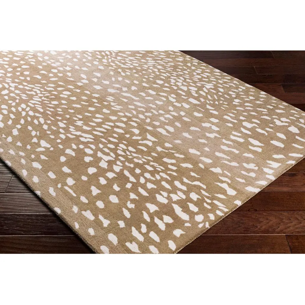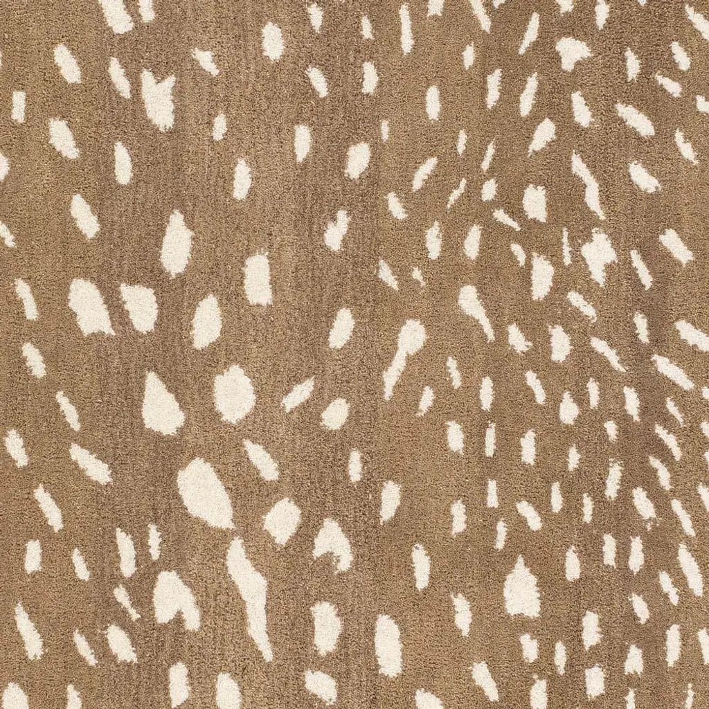 Rug swatch available! To order, choose SAMPLE in the size drop-down.Hand-tufted from 100% wool in a blend of light brown and cream hues, the 6'x9' Eleanor rug is soft underfoot with a plush medium pile. With its playful spotted pattern and neutral palette, this lively rug pairs nicely with any space, whether a dining room, nursery, entryway, or home office.