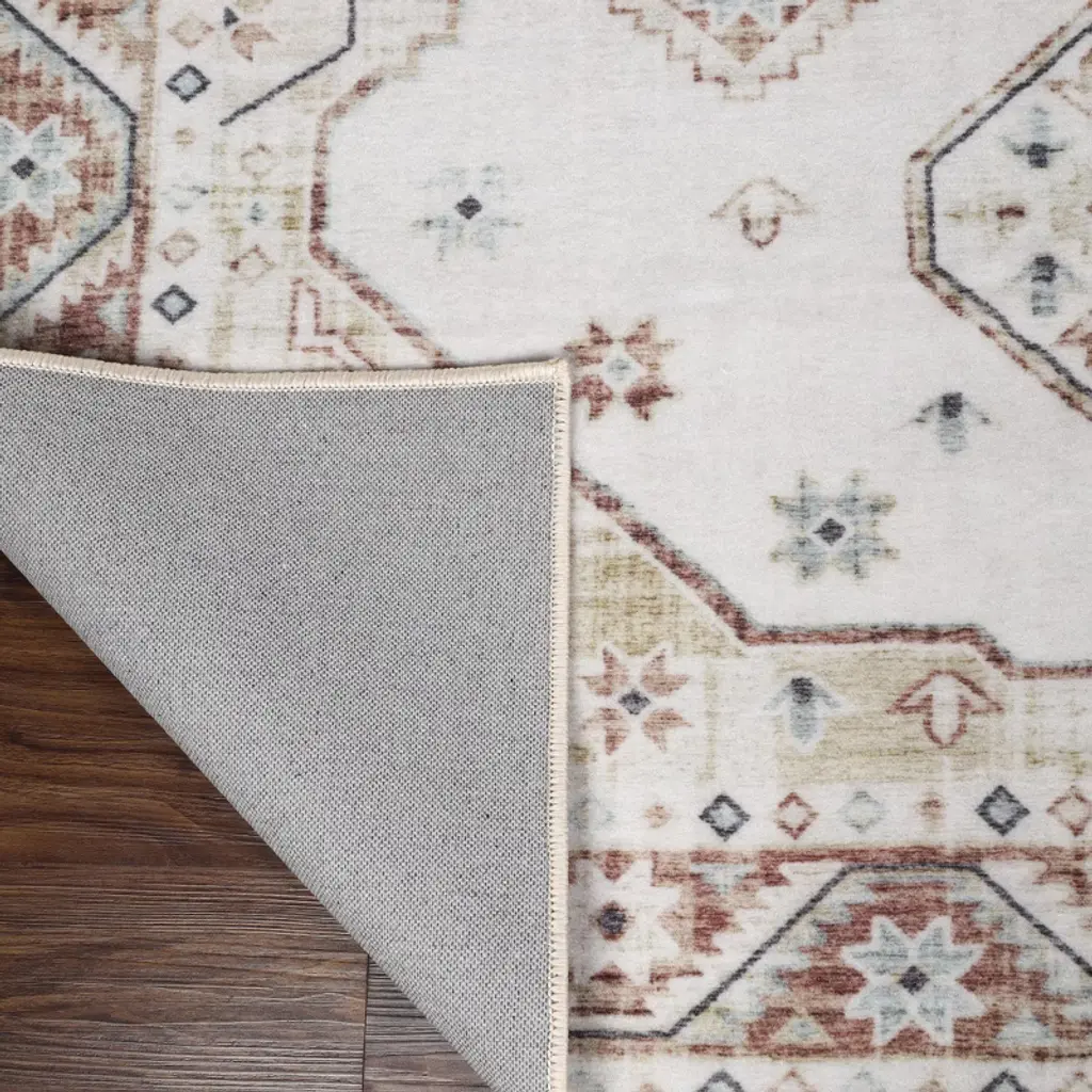 Elegant Floral Medallion Border Washable Indoor Area Rug, 10'x14', Ivory - Blue Nile Mills