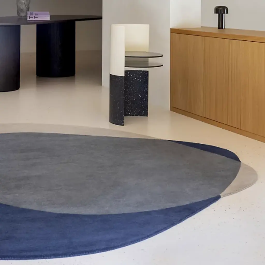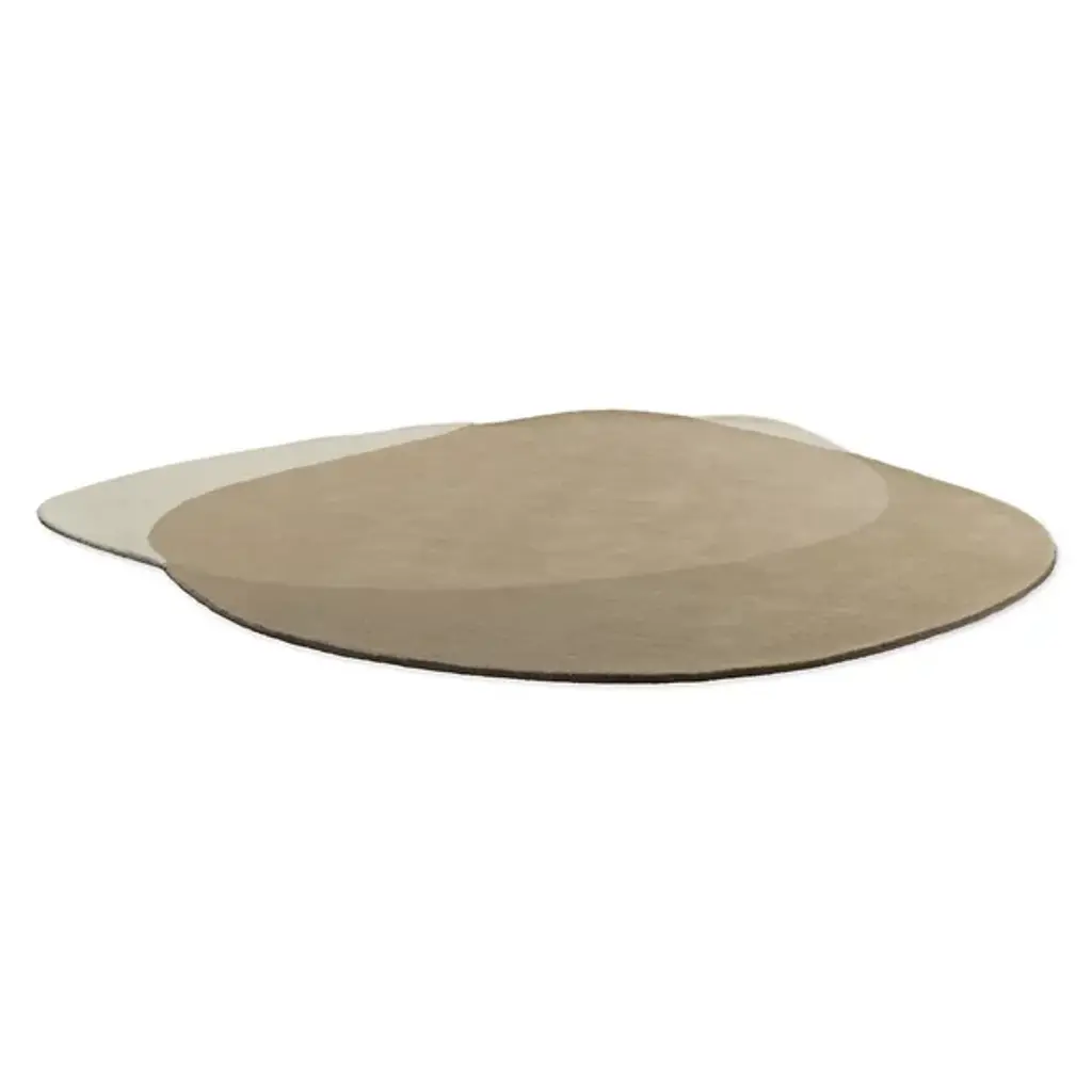 Playful and present, the Element Arp Rug from Brink & Campman mixes contemporary simplicity with careful construction, in the form of a hand-tufted wool weave made in India, backed by cotton and latex. The curving, bloblike form interposes two rounded, organically-shaped zones across each other, with the fibers and threads converging in colors as they meet in a central area. The thin areas to either side provide a tasteful contrast, adding impact to its surroundings.