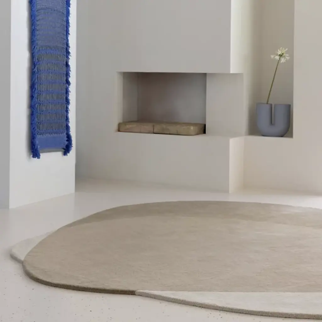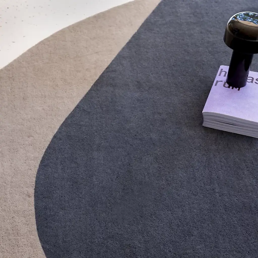 Playful and present, the Element Arp Rug from Brink & Campman mixes contemporary simplicity with careful construction, in the form of a hand-tufted wool weave made in India, backed by cotton and latex. The curving, bloblike form interposes two rounded, organically-shaped zones across each other, with the fibers and threads converging in colors as they meet in a central area. The thin areas to either side provide a tasteful contrast, adding impact to its surroundings.
