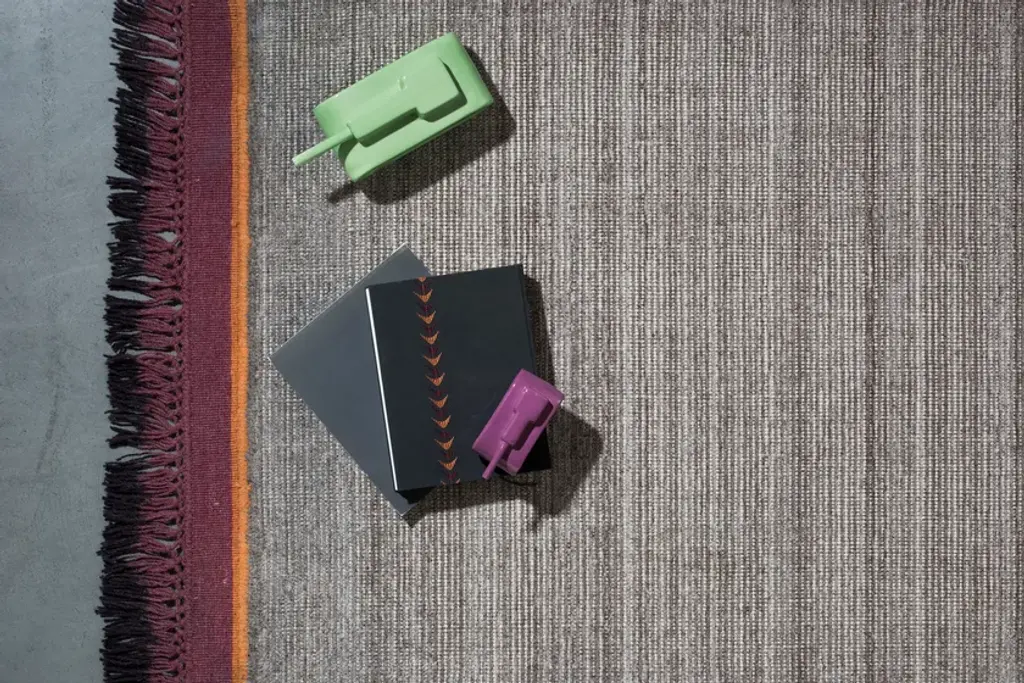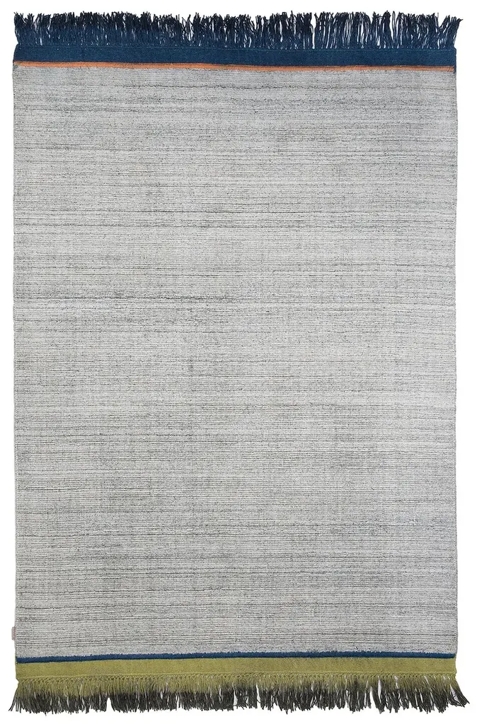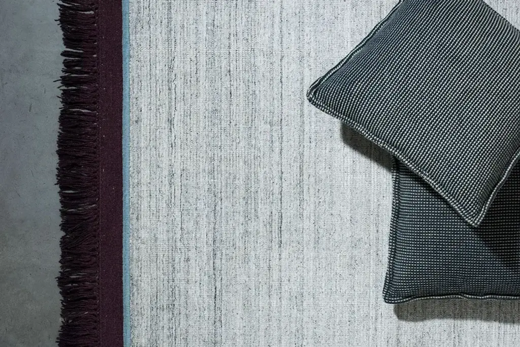 Elemental is an essential carpet, basic but strongly felt that responds to man’s primaries desires of matter and color. Powerful and primitive, Elemental is in tune and composed of one of the classic elements: air, earth, fire and water. Elemental is made with weaving 'handloom' in wool and viscose blend with colored edges in two different colors. With 'dip dye' colored fringes. Colors EL|01 (grey | fringes mustard and turquoise) EL|02 (light grey | fringes orange and violet) EL|03 (medium grey | fringes blue and light green) EL|04 (taupe | fringes pearl grey and burgundy) EL|05 (dark grey | fringes light blue and plum) Technical informations Quality: Handloom, wool and viscose. Thickness: 8 mm approx. Weight: 2,8 Kg/sqm approx.The configuration (size + color) must be completed to obtain the final price of the product.'Handloom ' is a type of carpets whose production is made on a loom by entirely manual weaving operations . The set of processes makes possible a great variety of patterns and complex manufactures which can rarely be replicated on automatic looms . The design of each new carpet is reworked by our weavers, to which follows the dyeing and the positioning of the yarns in the warp and weft according to the models designed by the designers . For Warli ' handloom ' it is synonym of rugs with innovative and functional design, made according to a distinctive language of rigorous style, formal use of the color and quality of production.