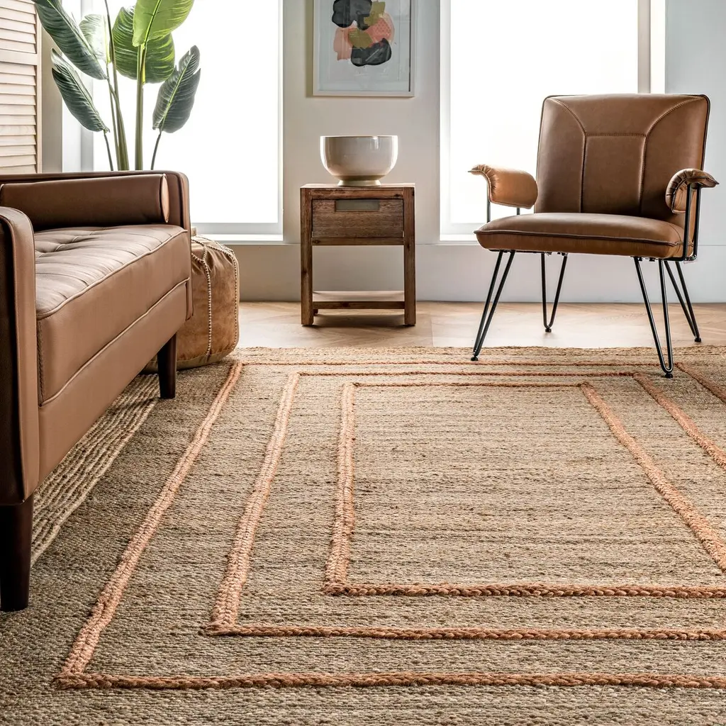 Concentric rectangles woven on top of the neutral ground add to this flat-weave rug's artisanal appeal. Because it's handcrafted of renewable jute, the softest of the natural fibers commonly used for floor coverings, the rug is a pleasure to walk across barefoot. A rug pad is recommended to help prevent slipping.