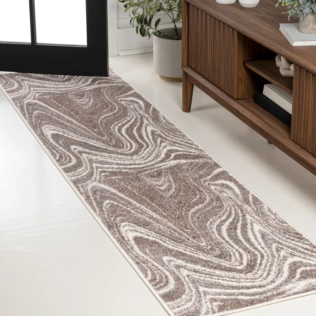 Eleni Contemporary Glam Abstract Marble Area Rug - Brown / 5 X 8