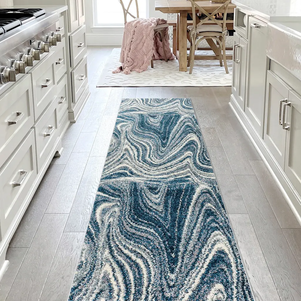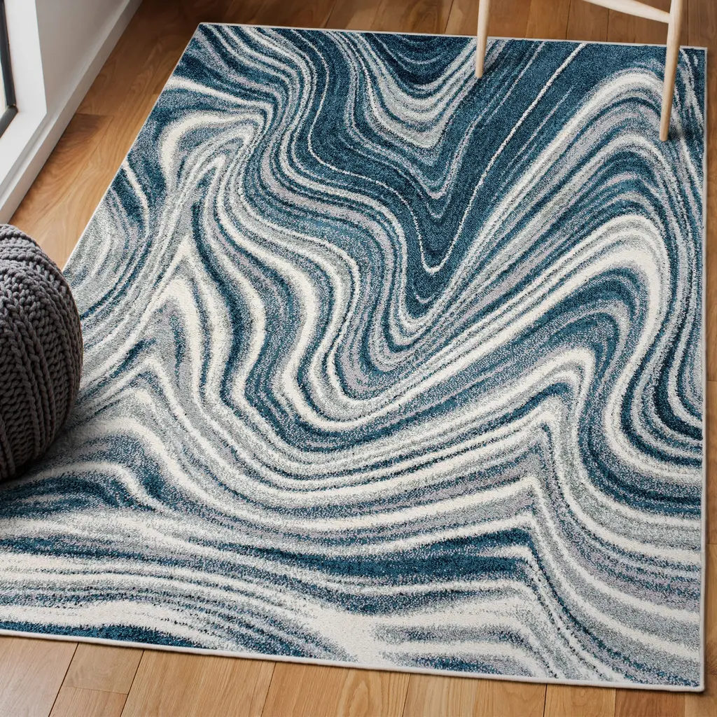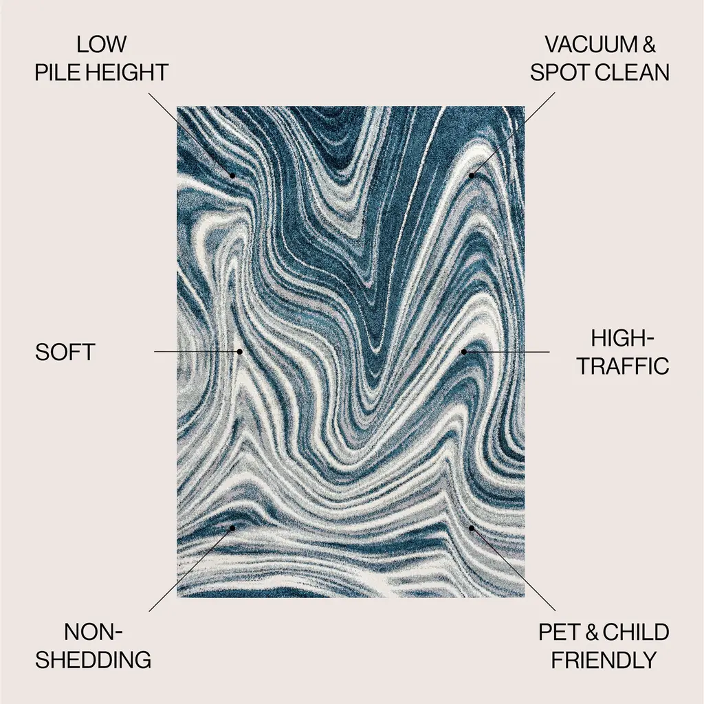 Inspired by natural marble, this modern, abstract rug makes a bold statement. With soft, durable synthetic fibers and a busy pattern, this rug is ideal for homes with kids and pets. It's also the perfect centerpiece for a contemporary or industrial interior.
