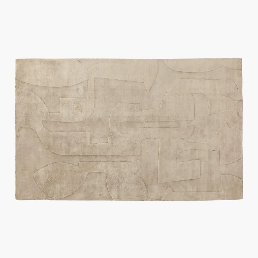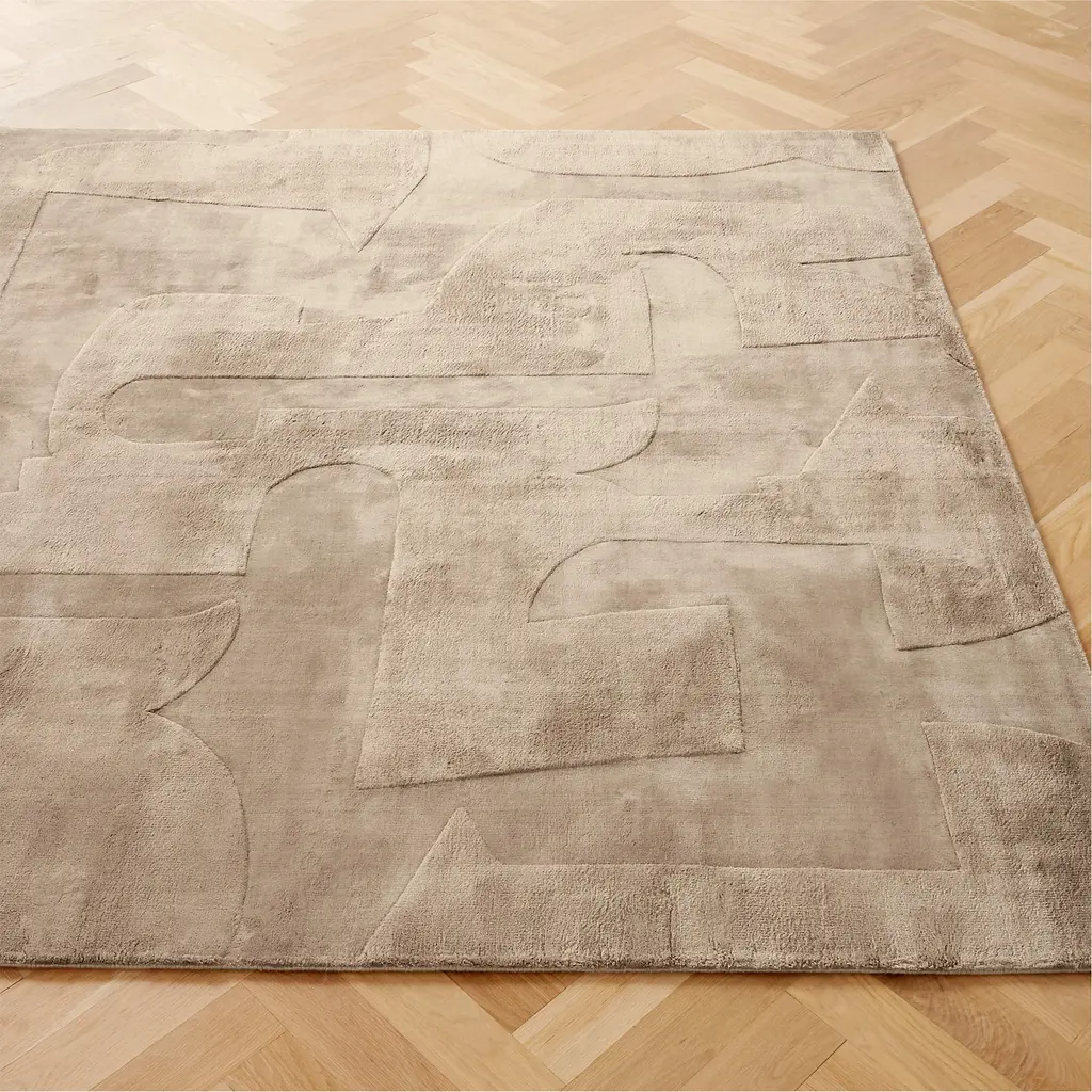 Handloomed in 100% TENCEL™ Lyocell, lush area rug is embossed with a subtle abstract design inspired by Brazilian modernism. Known for its natural comfort, sustainable TENCEL™ Lyocell offers softness with a subtle sheen, creating tonal highs and lows as it catches the light. CB2 exclusive. How will it look in your room? 12"x12" rug samples are available in stores for a fee refundable upon return of the sample.