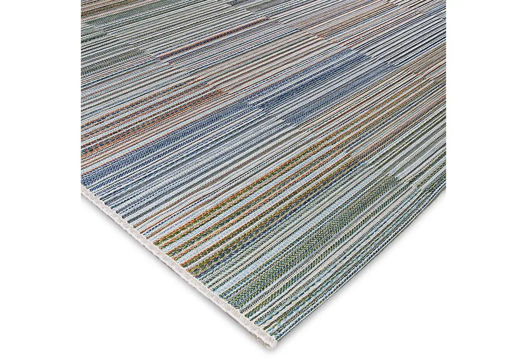 This outdoor rug is made of fiber-enhanced, UV-stabilized polypropylene, an easy-to-clean material that can withstand the elements and resists wear and tear. Perfect for use on the porch or patio, it can also be brought indoors to protect flooring in high-traffic areas.