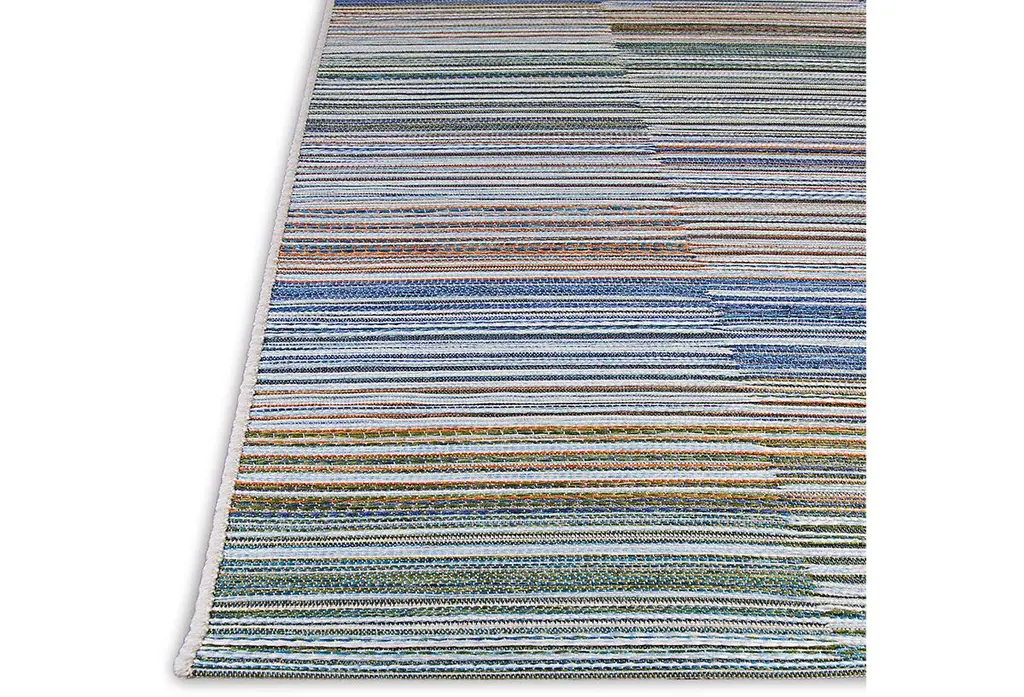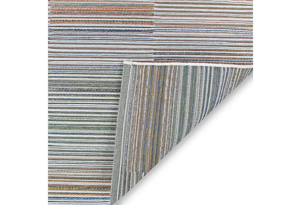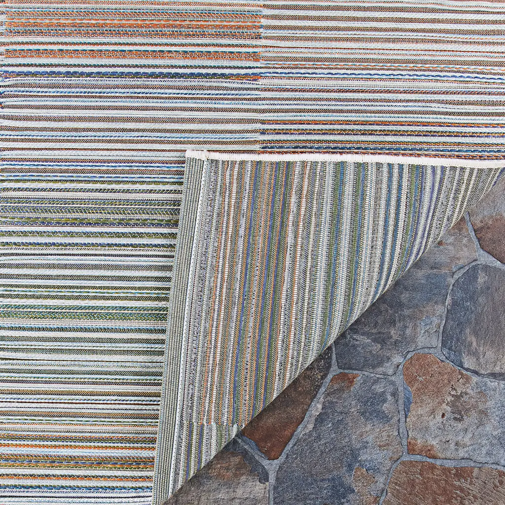 This outdoor rug is made of fiber-enhanced, UV-stabilized polypropylene, an easy-to-clean material that can withstand the elements and resists wear and tear. Perfect for use on the porch or patio, it can also be brought indoors to protect flooring in high-traffic areas.