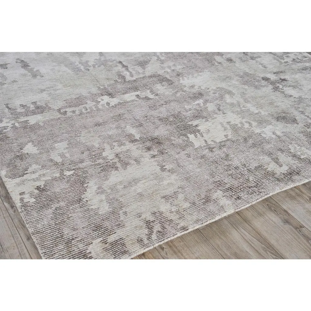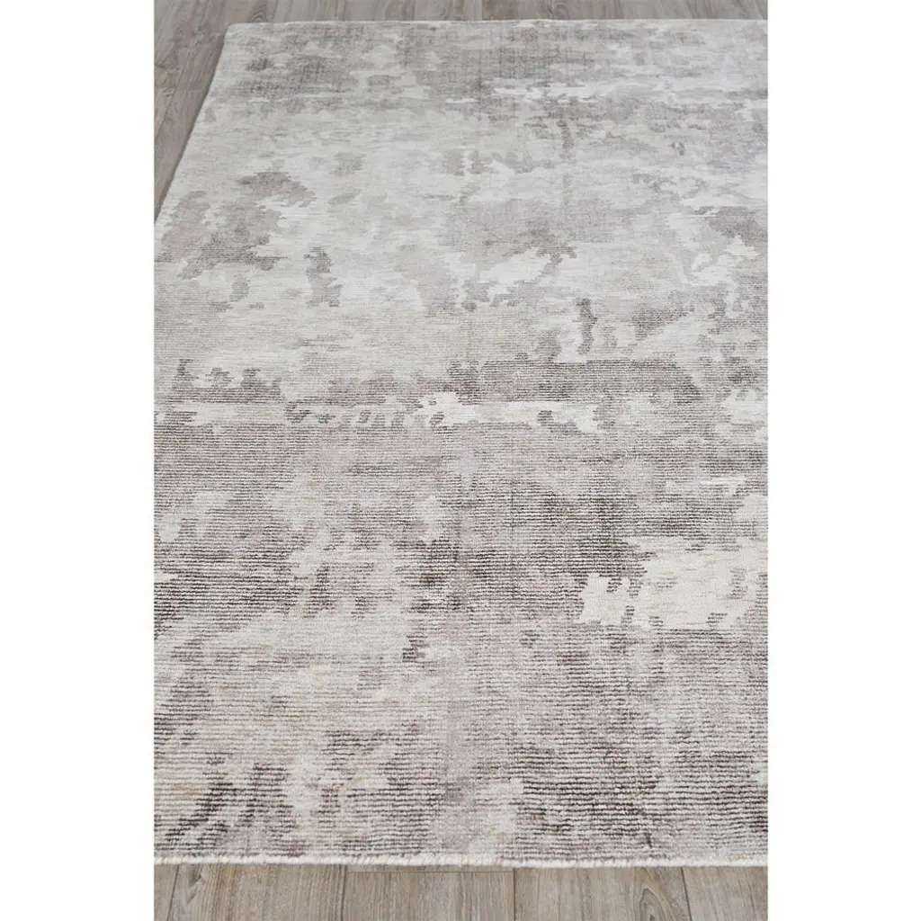 Rug swatch available! To order, choose SAMPLE in the size drop-down.Hand-loomed in India from a blend of wool and bamboo silk fibers, the 6'x9' Elijah rug is soft underfoot with a subtly lustrous appearance. An abstract pattern in shades of brown evokes the look of a watercolor painting, refreshing any living space with an air of casual sophistication.