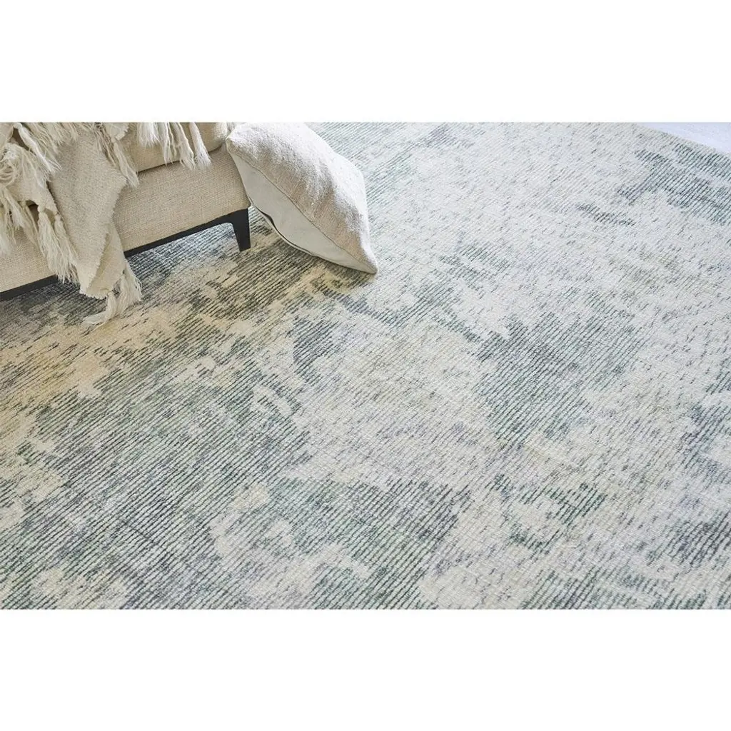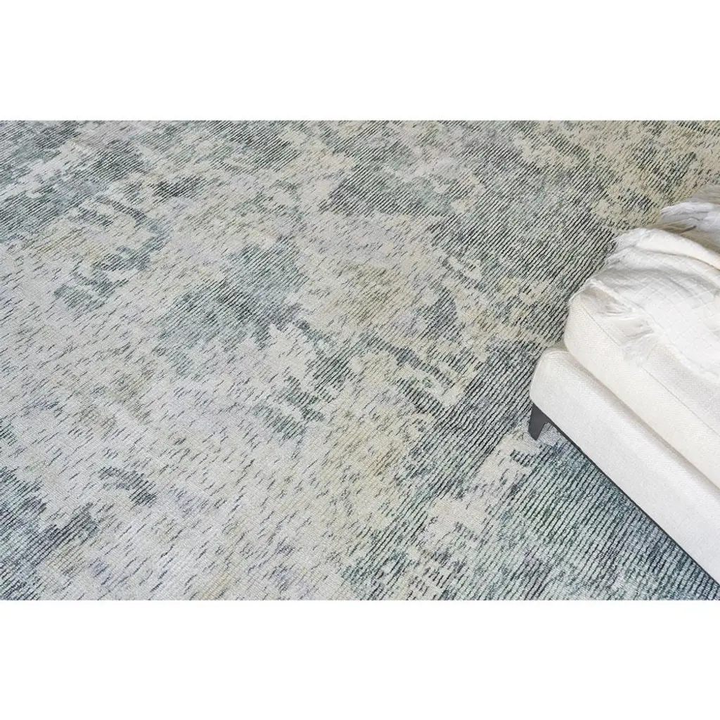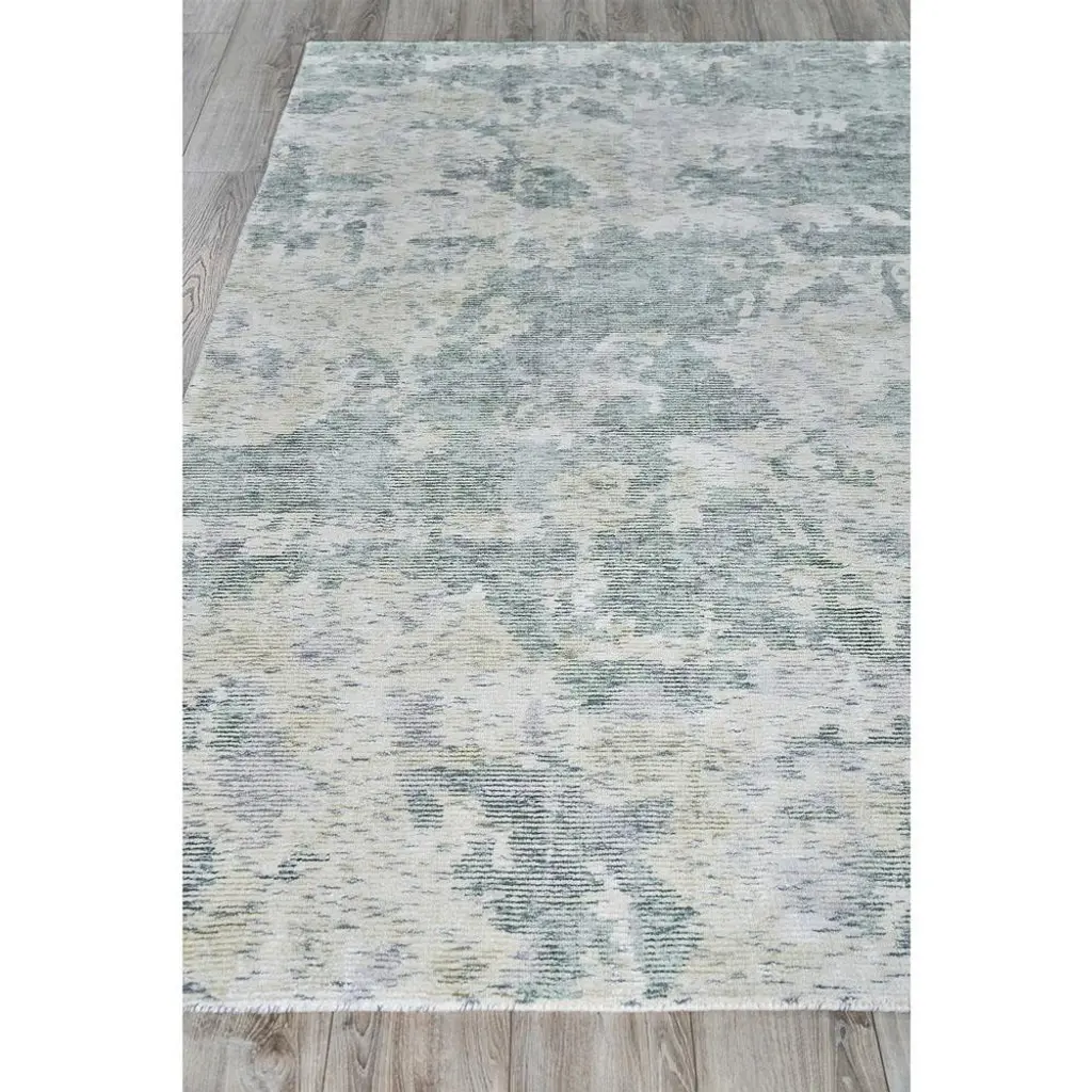 Rug swatch available! To order, choose SAMPLE in the size drop-down.Hand-loomed in India from a blend of wool and bamboo silk fibers, the 8'x10' Elijah rug is soft underfoot with a subtly lustrous appearance. An abstract pattern in shades of green evokes the look of a watercolor painting, refreshing any living space with an air of casual sophistication.