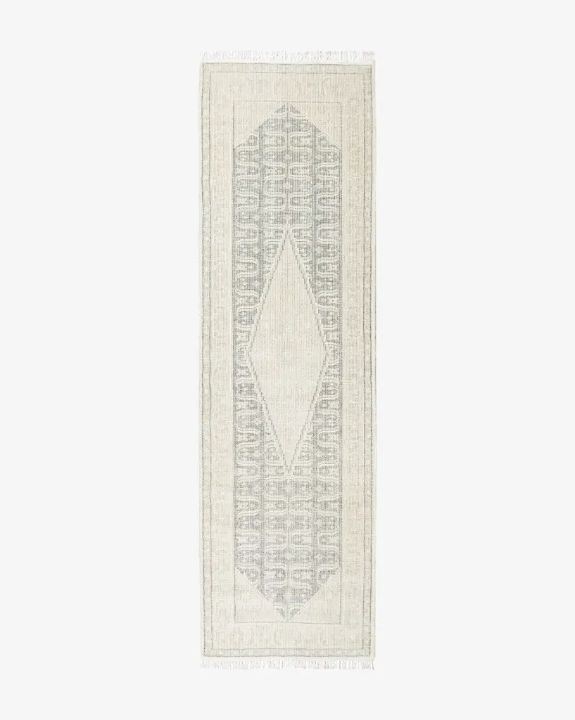 With cool tones to demonstrate its intricate motif, the Elin Hand-Knotted Wool Rug is inspired by traditional textiles. Its soft texture and wool hand-knotted construction bring artisan details to your space and lasting beauty for years to come.