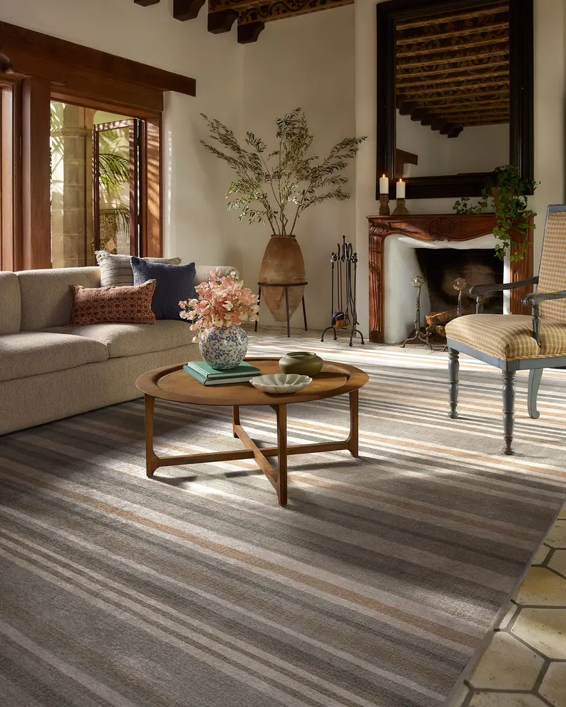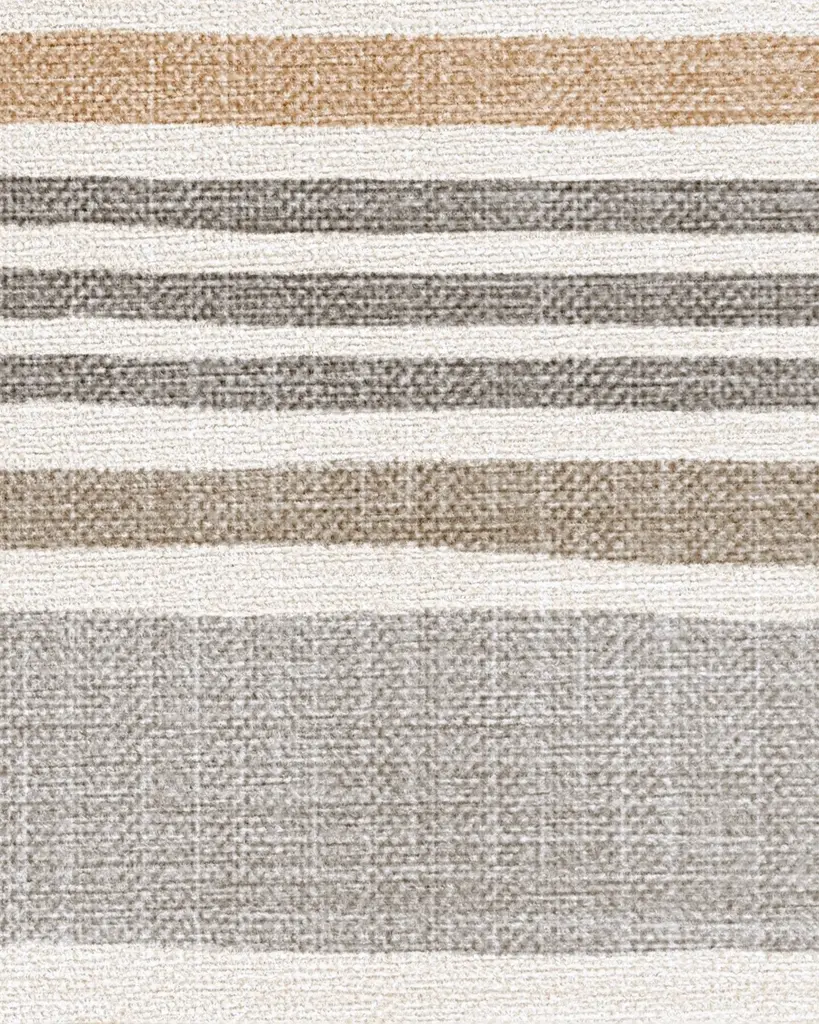 Our Elio Stripe Grey & Ivory Rug features a pattern of horizontal, neutral stripes with organic linework. Warm taupes, greys, and beige tones blend together to form a warm palette. Water-resistant, stain-resistant, and machine-washable. Rug colors may vary slightly according to your device and the lighting in your space.