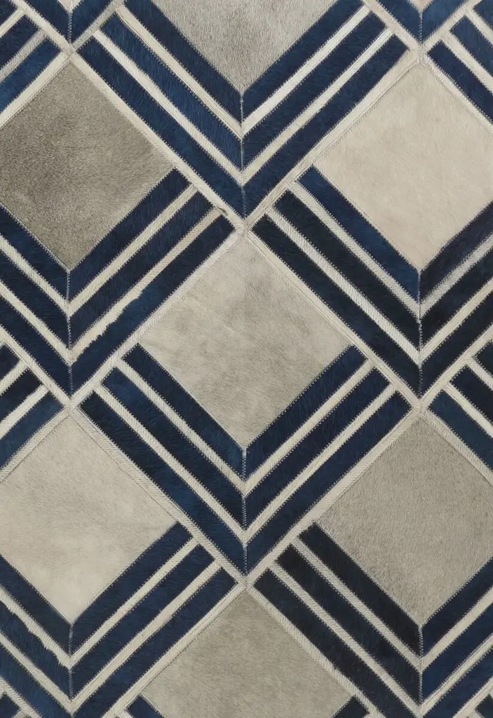 Eliot Hide Rug, Ivory/navy