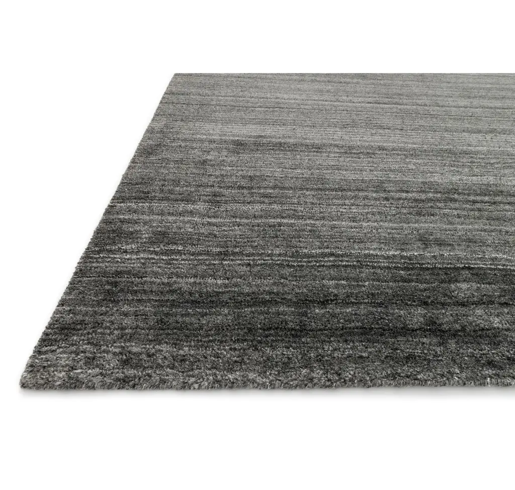 Crafted in India, this hand-knotted rug's linear, tonal designs in wool and shimmery viscose make it at once casual, chic, and ultra-sophisticated. Its silver-gray hues lend a soothing and calm feel to any space.