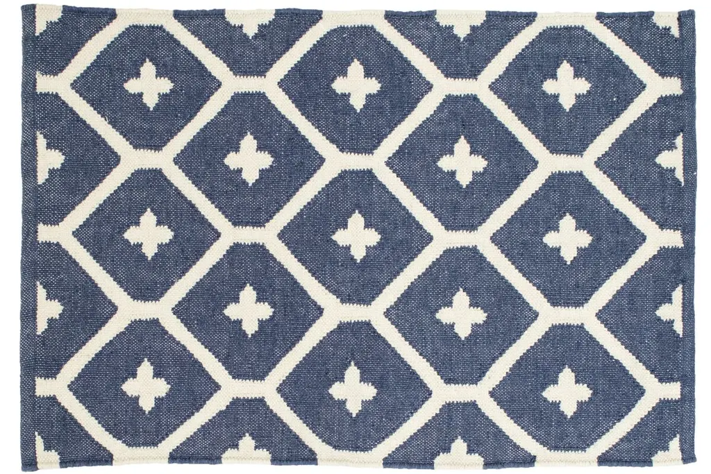Crafted from UV-treated recycled plastic and handwoven with a bold geometric design in navy, this eco-friendly rug adds a refreshing touch of contemporary style to any indoor or outdoor space. We recommend a rug pad to extend the life of your rug and keep it securely in place.
