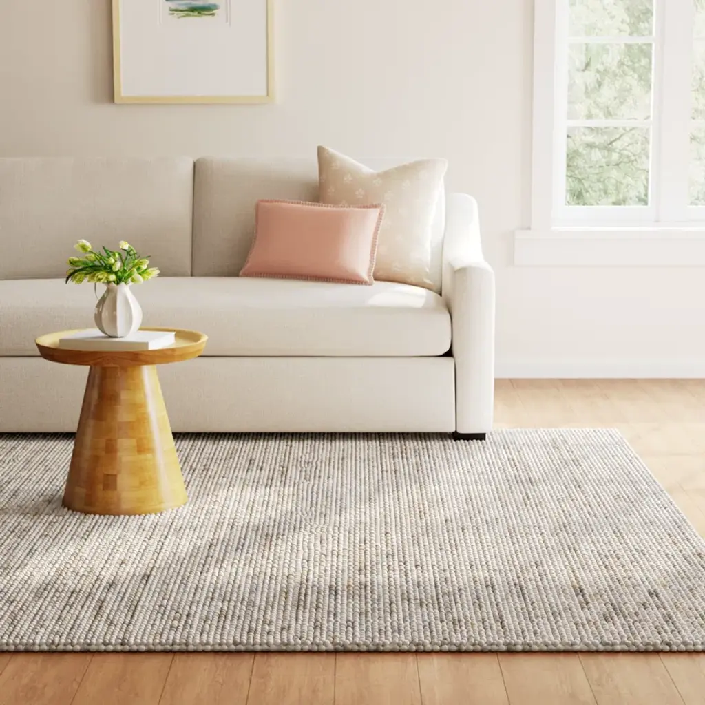 This hand-woven area rug adds natural warmth to your space with its blend of 80% wool and 20% cotton. Featuring an ivory base with brown and blue accents, its flatweave design is soft underfoot and low-profile – perfect for high-traffic areas because it's easy to vacuum. We recommend pairing with a rug pad (sold separately) to prevent any sliding.