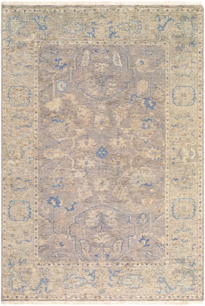 Collection: Ellie Colors: Beige, Denim, LightGray, MediumBrown Construction: Hand Knotted Material: 90% Wool,10% Cotton Pile: Low Pile Pile Height: 0.08" Styles: Traditional Made In: India Thickness: 0.24" Fringe Length: 1.5" Price Range: $$$$$ (Premium)