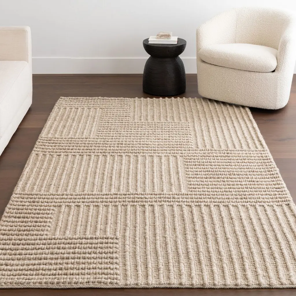 Create a bold space with this contemporary area rug. Made from wool and cotton fibers, this floor covering will surely make a statement in any room it’s placed in. The handmade textured rug features a beautifully detailed high-low striped pattern and blends seamlessly with any décor from modern to bohemian. Never settle for anything less than perfection with our pet-friendly and easy to care for area rugs.