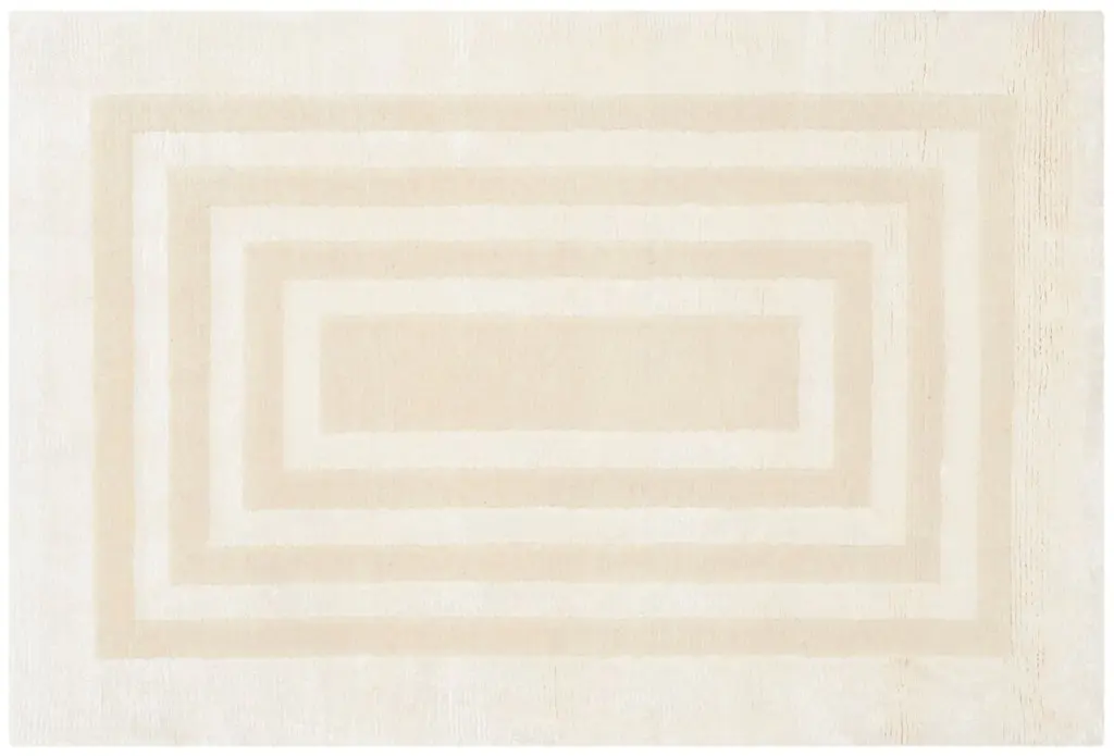 The Ellington Border Area Rug from Ralph Lauren lives up to its name. The eye is drawn to the bold border patterns which line the rug’s surface. This rectangularly shaped rug is knotted by hand and is composed of an exquisite blend of 70% wool and 30% viscose for your comfort.