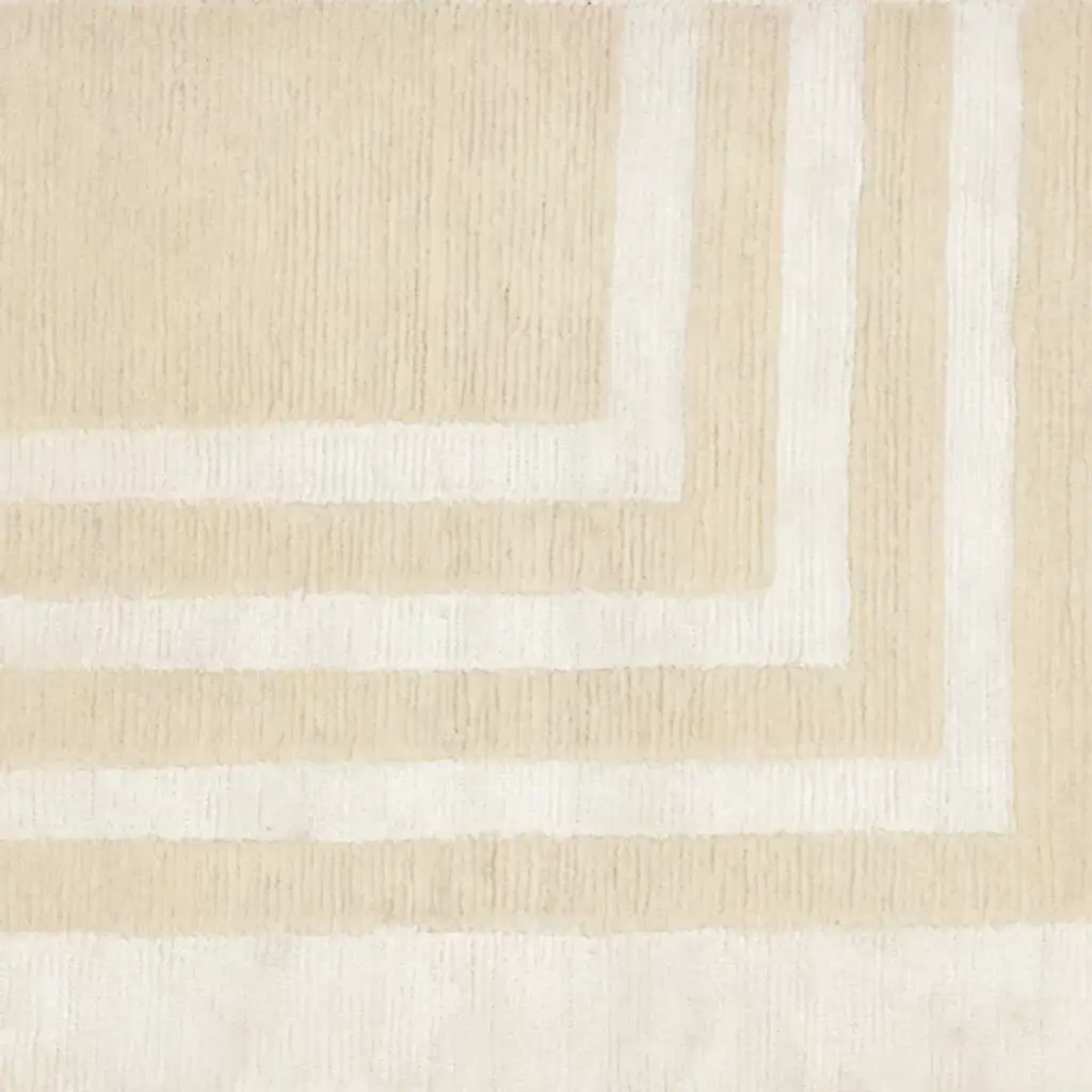 The Ellington Border Area Rug from Ralph Lauren lives up to its name. The eye is drawn to the bold border patterns which line the rug’s surface. This rectangularly shaped rug is knotted by hand and is composed of an exquisite blend of 70% wool and 30% viscose for your comfort.