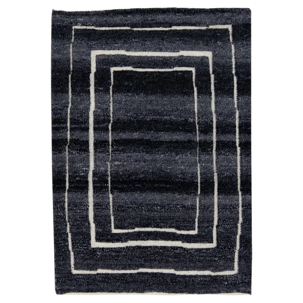 Channeling the glamour of the 1930s and '40s, this rug is hand-knotted of soft wool and silky viscose with a classic bordered design. We recommend a rug pad to extend the life of your rug and keep it securely in place.