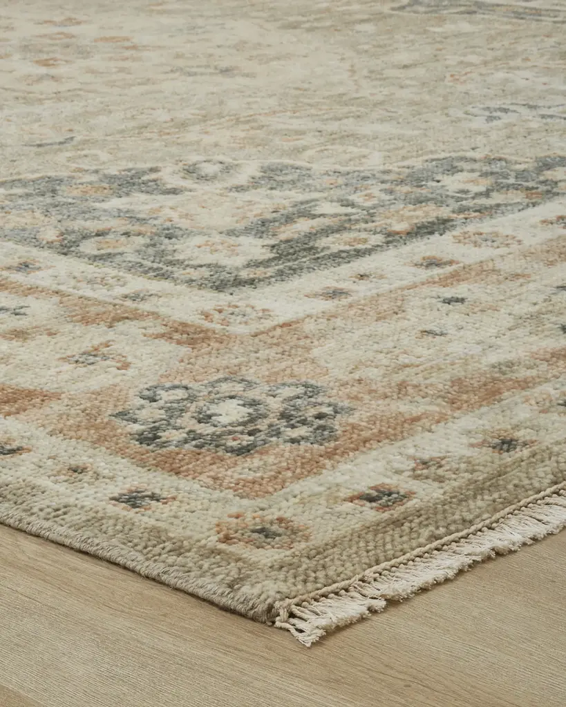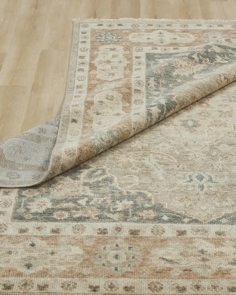 A traditional Oushak collection that incorporates classic patterns, designs and colorways ranging from tone-on-tone neutrals to many of the trendy colors embraced by today’s designers. Carefully hand-knotted in a special Turkish knot style, this tasteful collection checks all the boxes. Handcrafted of wool with cotton backing Item Weight (Lbs.): 76.0 Vacuum regularly; professional clean recommended Size is approximate; we recommend use of a rug pad (not included) Imported Please note: Rugs (especially wool rugs) are prone to a natural shedding process. With regular vacuuming, the shedding will decrease over time. Hand-knotted rugs tend to shed less than hand-tufted rugs, and flatweave rugs will shed less than those with a deeper pile, but all rugs will shed more in high-traffic areas than they do in lower-traffic spaces.Unfortunately, we cannot provide rug swatches at this time. We apologize for the inconvenience. We recommend using a rug pad with every indoor rug to prolong its beauty by minimizing everyday wear and tear and providing a little breathing space to help prevent fiber damage. A pad also helps stabilize the rug, reducing slippage on hard floors. Shipping Direct from Vendor, usually ships within 14 business days. undefined