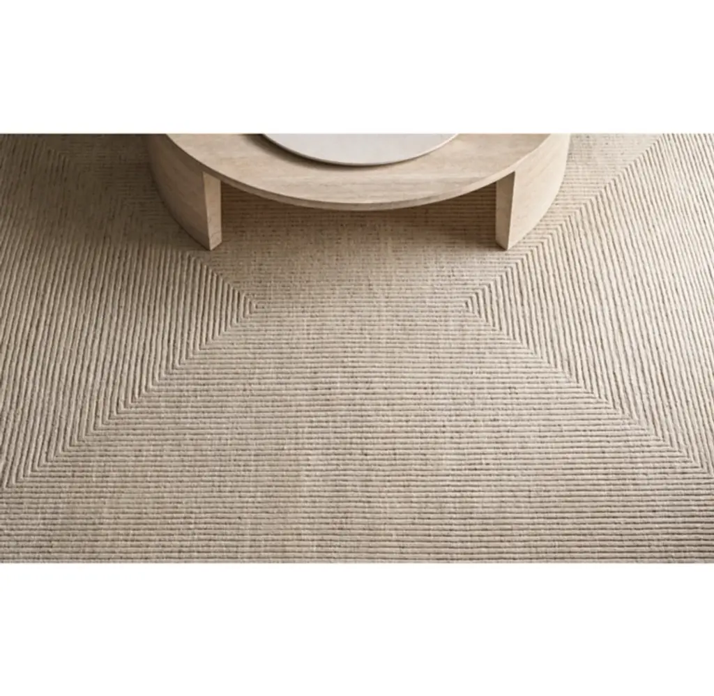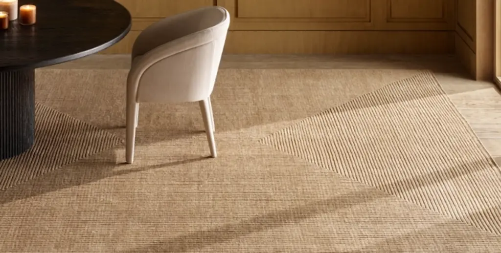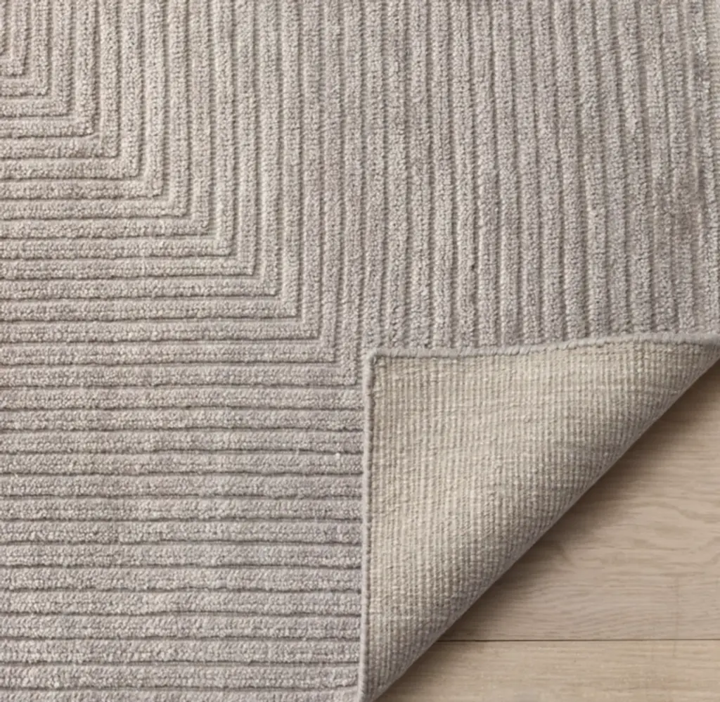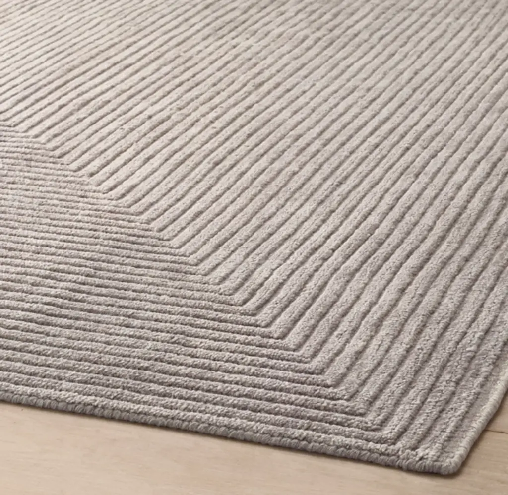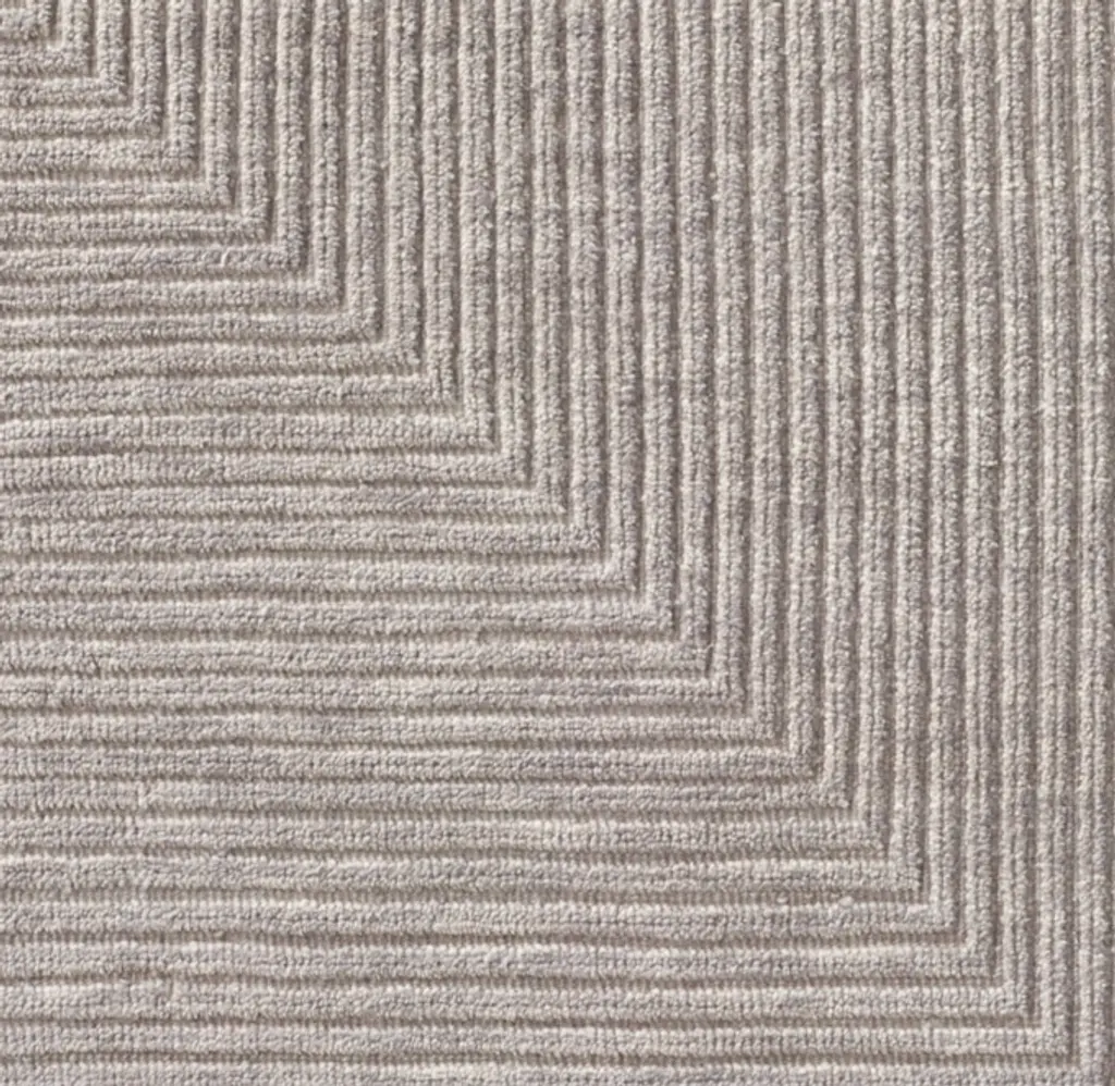 Lush shearing and low loops define our rug's offset angles, creating an interplay of line and texture. Spun from wool and viscose, the richly shaded yarns impart luxuriant softness and low sheen.
