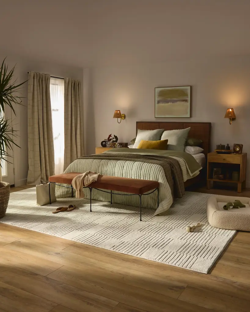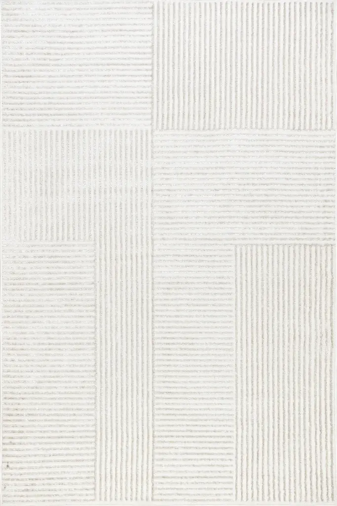 Meet the Ellis Soft White Plush Rug: cloud-soft comfort with a modern nod to classic tile. Offset grey stripes line up in subtle columns, bringing clean structure and quiet sophistication to a pale cream-white base. Perfect for cozy corners, work-from-floor moments, or stretching out with a good book. And if life gets messy (it will), no stress—it’s water-resistant, stain-resistant, and fully machine-washable. Colors may vary by device and lighting.