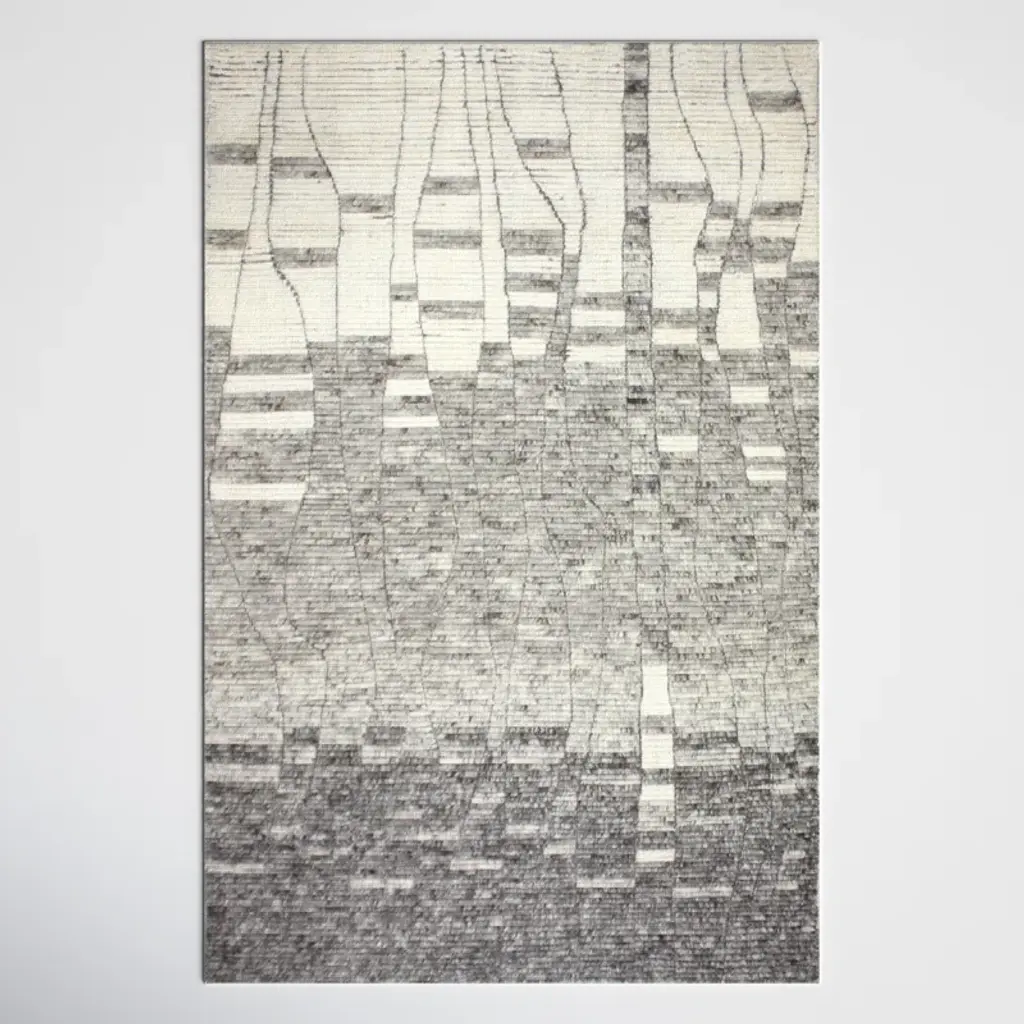 Add an effortlessly cool vibe to your space with this handmade area rug. It's hand-knotted from wool, and it showcases an abstract design of stripes and flowing lines in ivory and gray hues. We love how the medium pile height adds warmth and texture to your bedroom or living room floors while still being easy to vacuum. Pro-tip: Pair this piece with a rug pad for additional cushion and to help keep it from shifting and sliding underfoot.