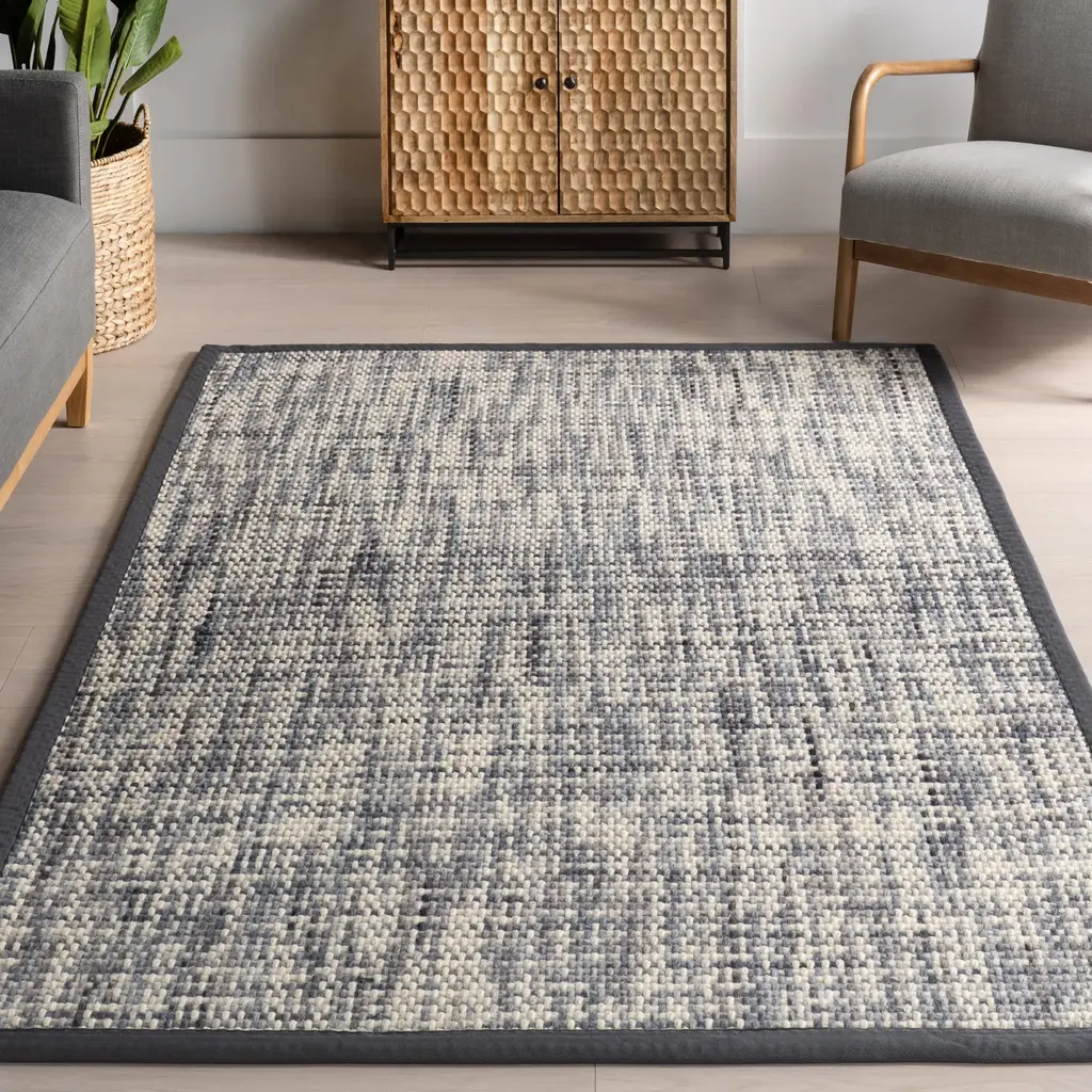 Elnora Bordered Crosshatch Wool-Blend Rug | Charcoal - 5' X 8'