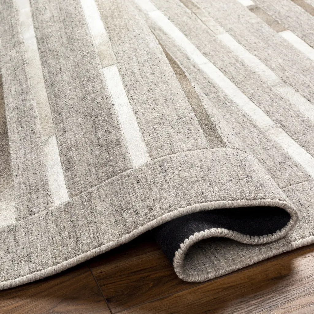 The simplistic yet compelling rugs from the Eloquent Collection effortlessly serve as the exemplar representation of modern decor. These rugs are hand crafted, radiating an atmosphere that can only be created by a handmade rug. Made with Viscose, Leather in India, and has No Pile. Spot Clean Only, One Year Limited Warranty.