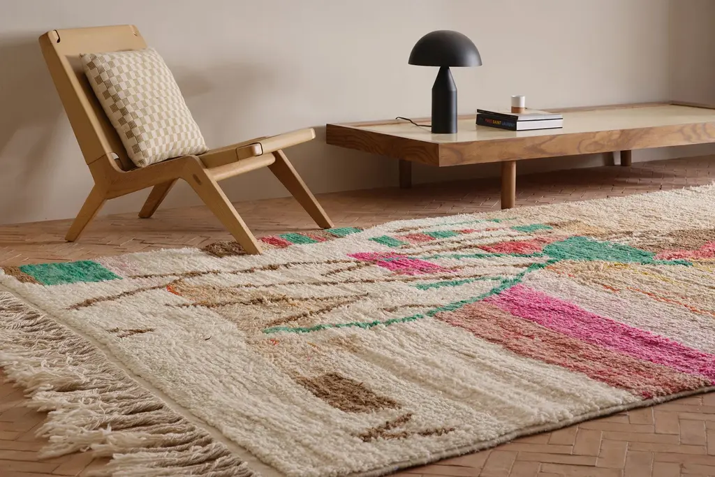 Our Moroccan pieces are each one-of-a-kind. Much of our collection was woven between 30 and 100 years ago, and curated by us. Other rugs in our collection are fresh off the loom and made with traditional techniques. Moroccan rugs don’t come with a key. As with any painting or poem, their motifs have many subjective interpretations. Originally made for personal use, these rugs took months to weave, documenting a shifting tide of events and emotions in the weaver’s life.