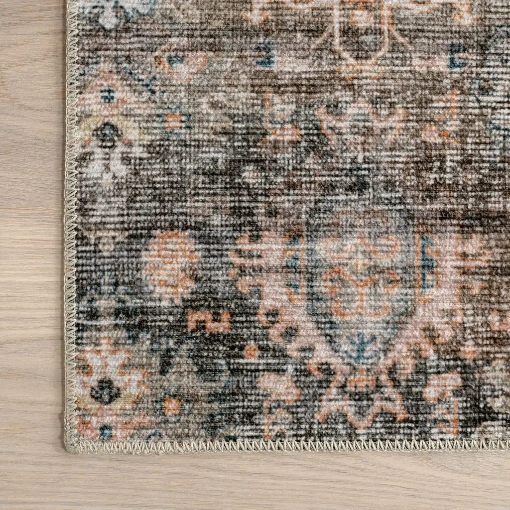 Elva Medallion Spill Proof Washable Rug | Grey - 5' X 8'