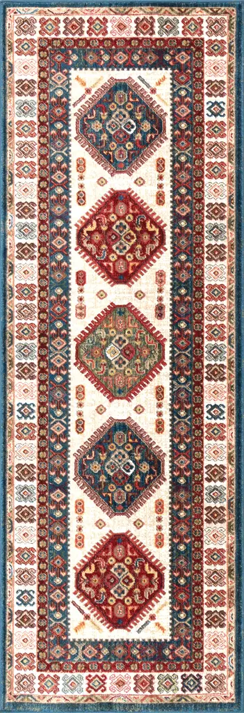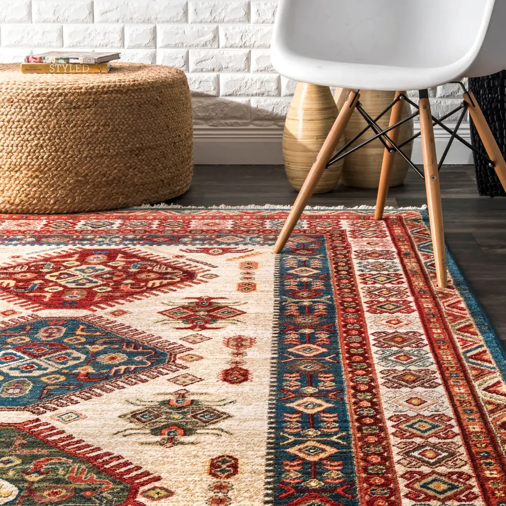 Stylish and versatile, this global-inspired pattern will make a standout addition to any room in your home. Machine-made with durable synthetic fibers, this rug is built to last and will withstand regular foot traffic. A stunning array of colors gives a designer look and makes a statement in any room. Make the most of your time at home with our pet-friendly and easy to clean area rugs.
