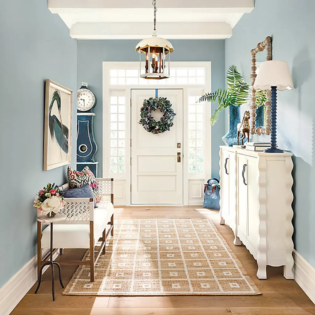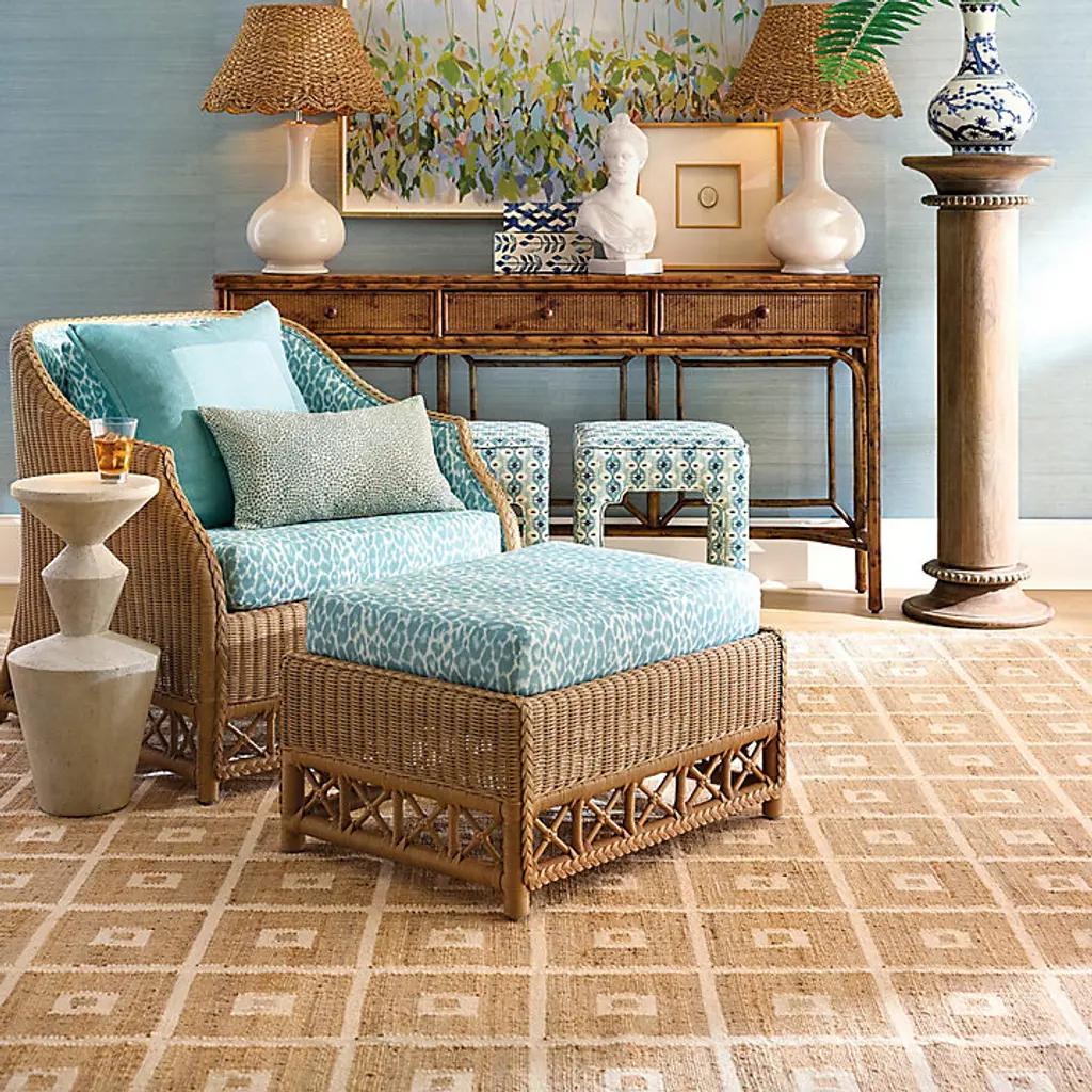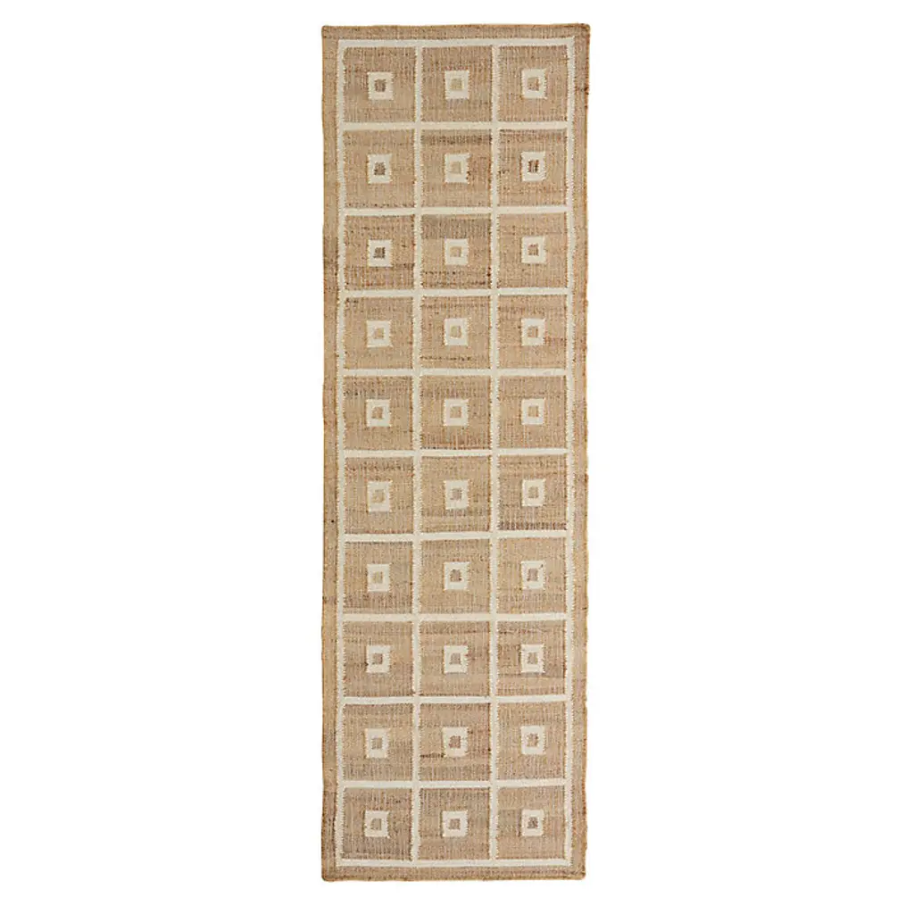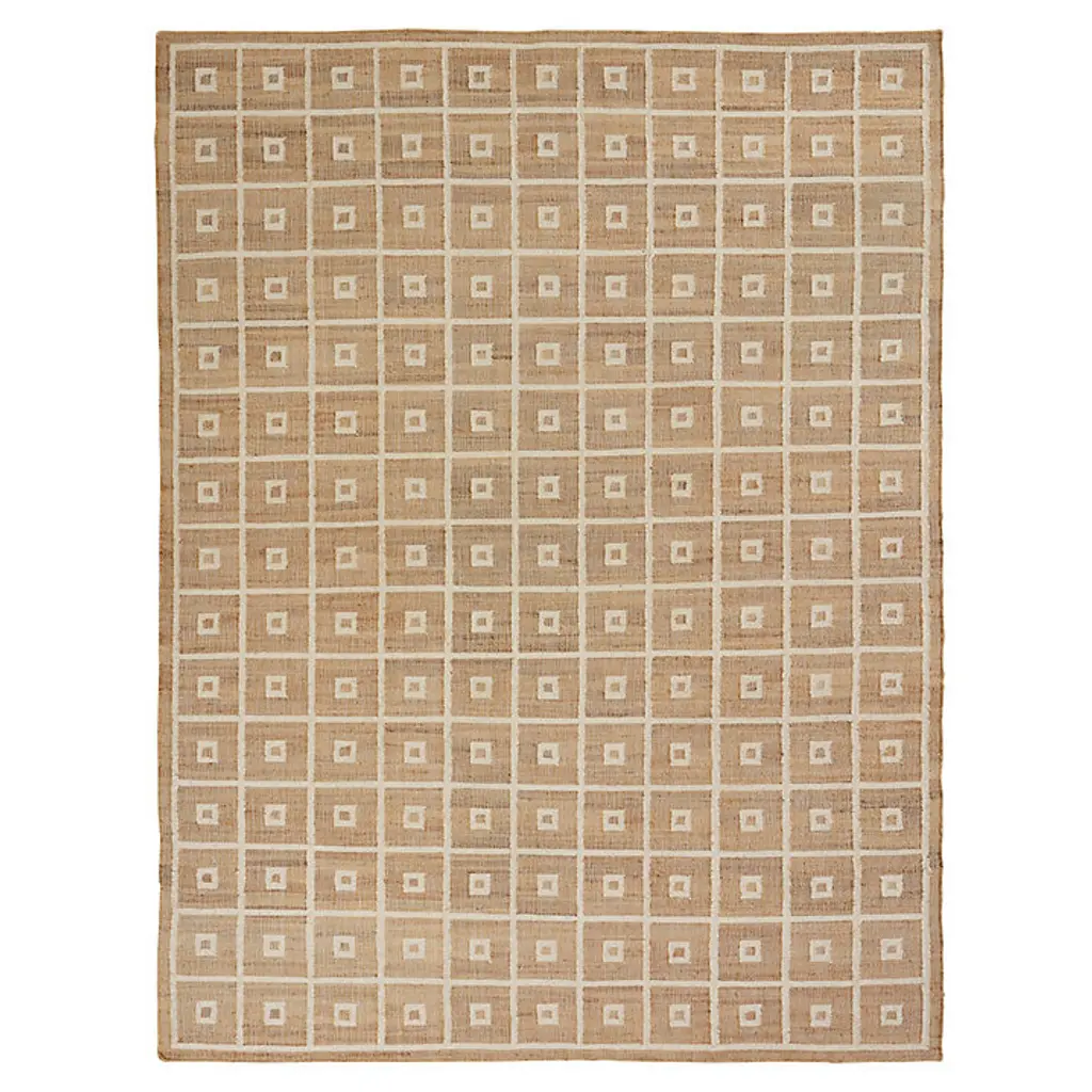 Geometric pattern and warm natural texture together one handsome area rug. Our Embry Natural Fiber Rug is hand braided of jute, wool and cotton for a surprisingly soft hand, and printed in an ivory square-in-square motif. The neutral colors and crisp pattern pair easily with our favorite fabrics and wood finishes in the living room or bedroom. Embry Natural Fiber Rug features: