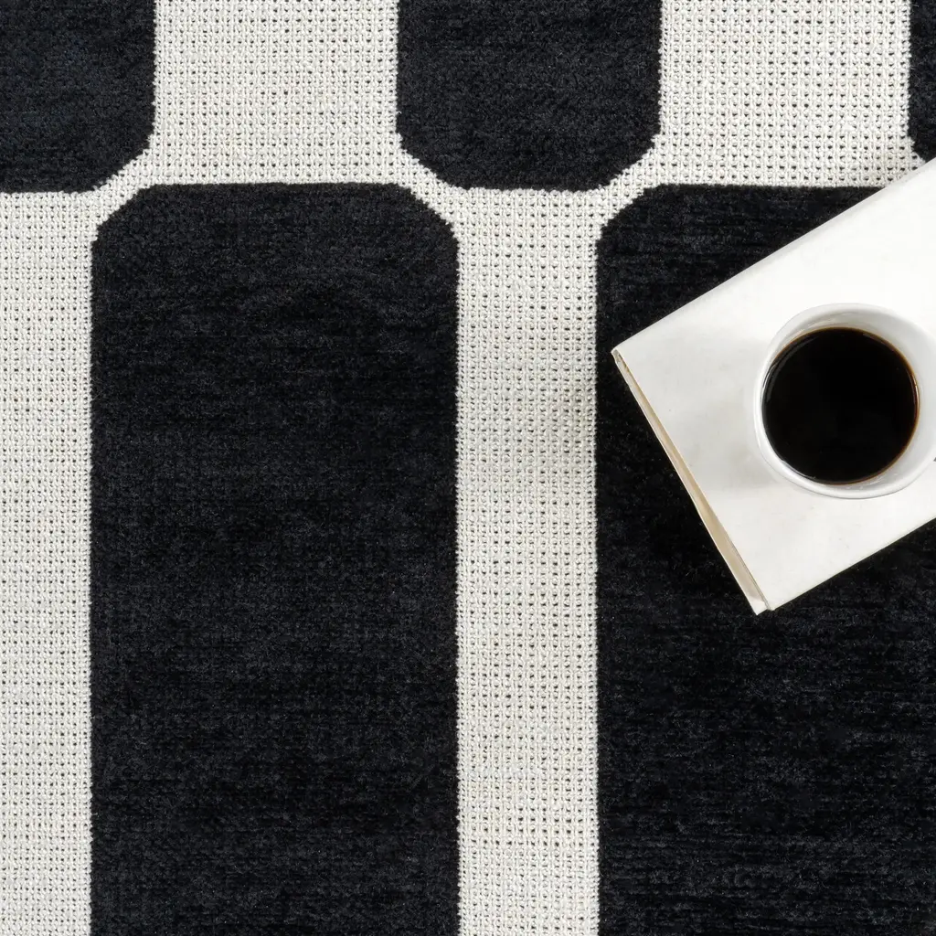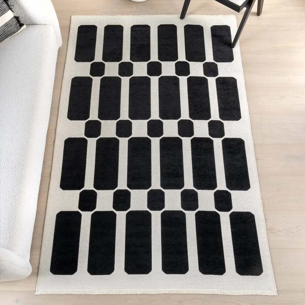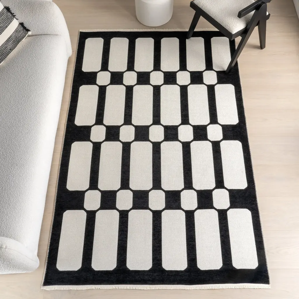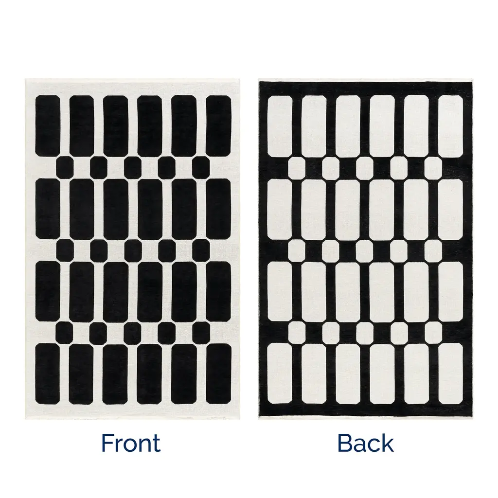 Emelia Blocks Reversible Washable Rug | Black/cream - 5' X 8'